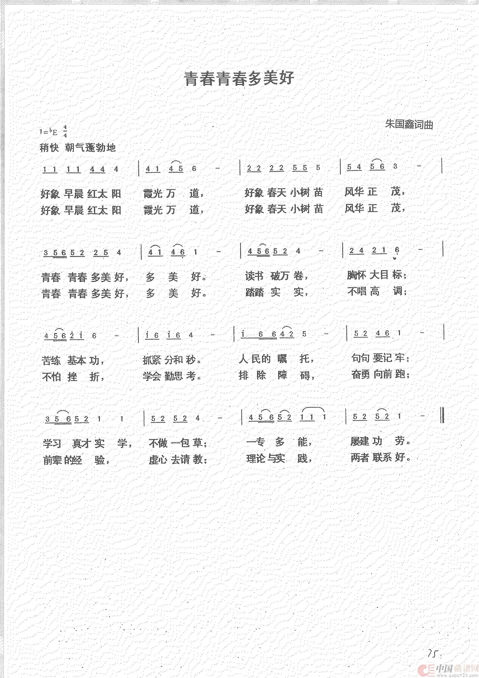 关于《青春青春多美好》曲谱的评论