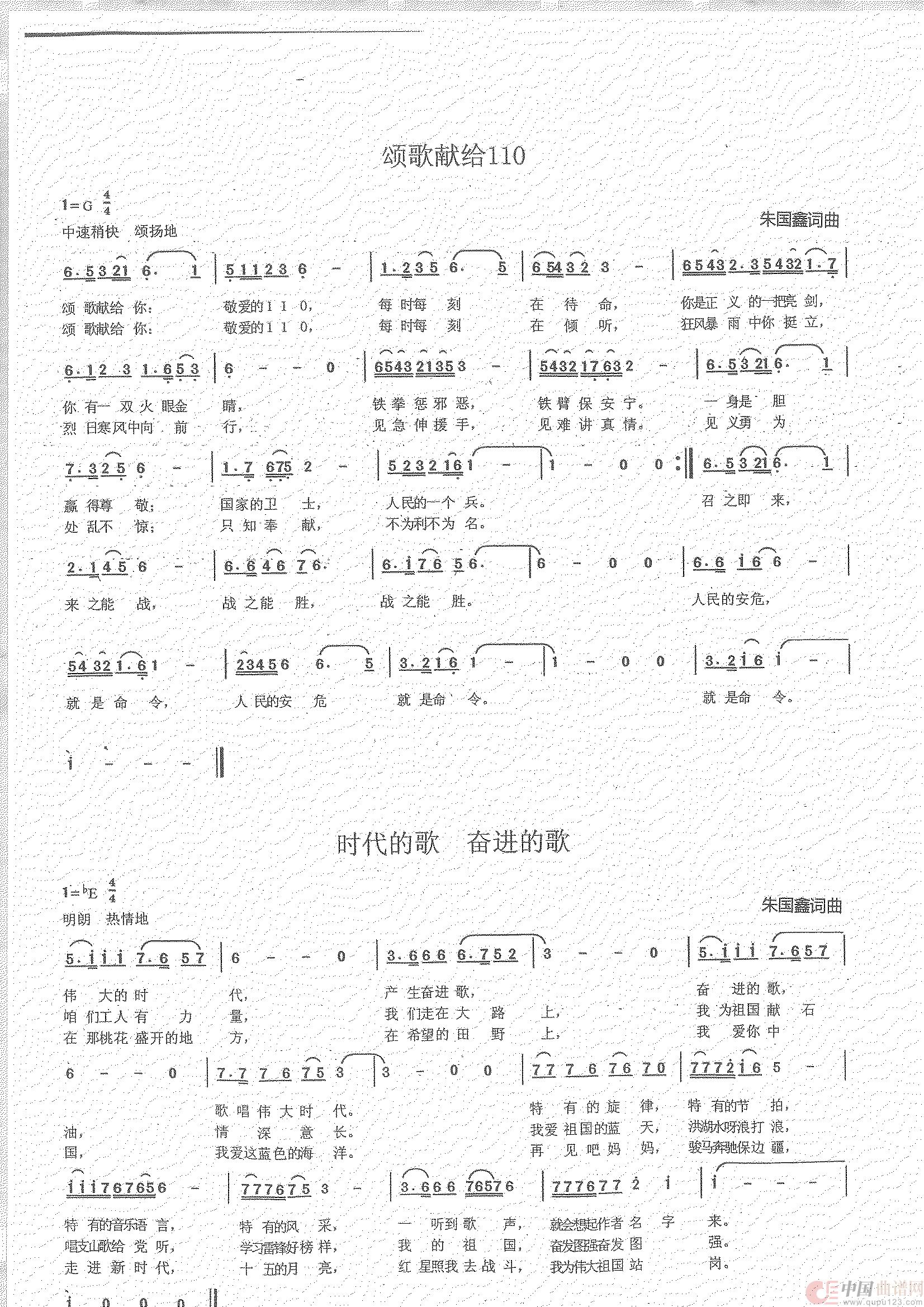 关于《颂歌献给民警110;时代的歌 奋进的歌;》曲谱的评论