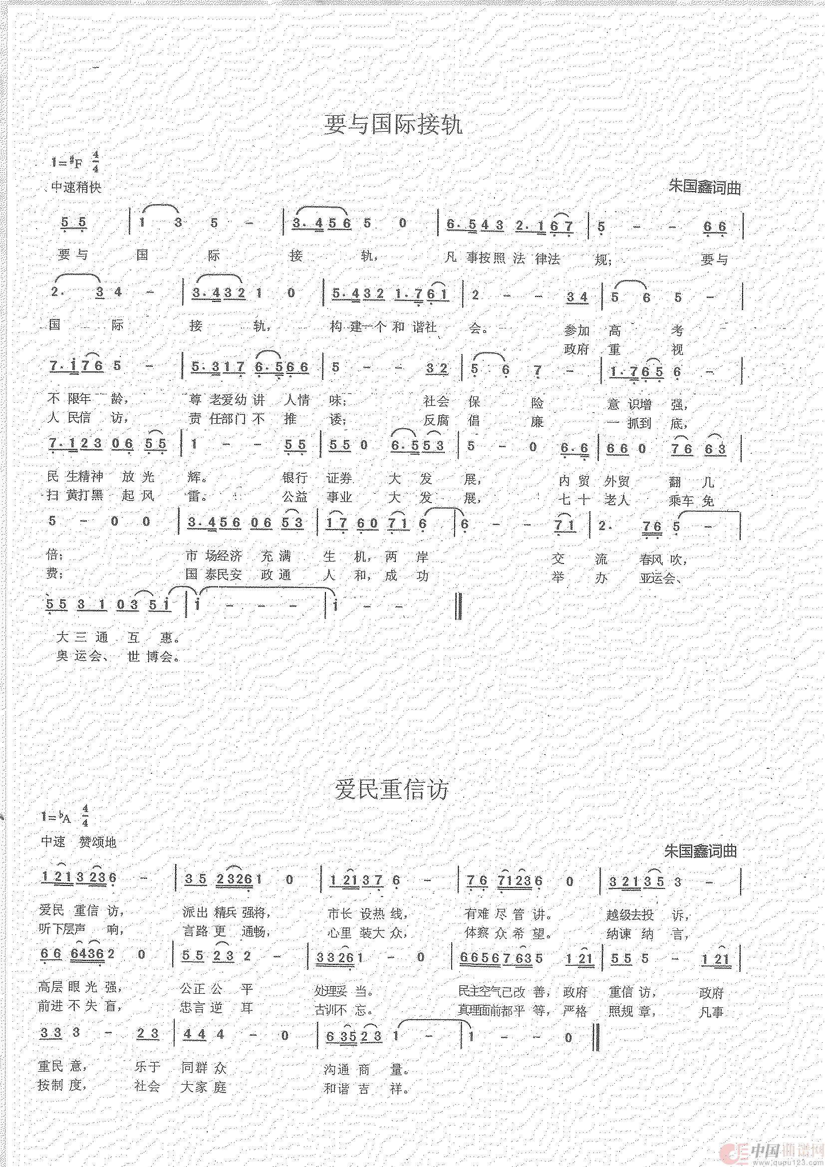 关于《要与国际接轨;爱民重信访》曲谱的评论
