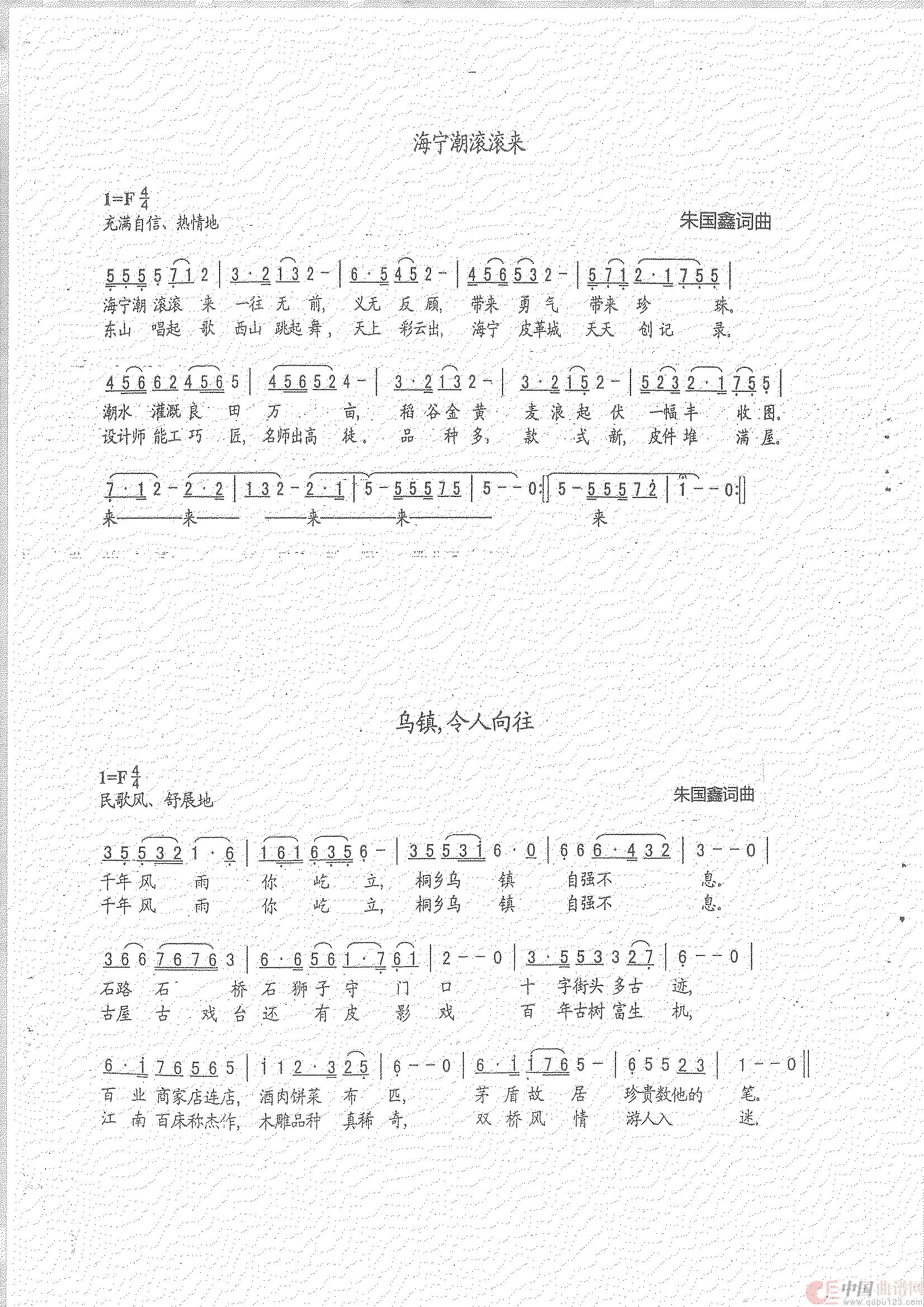 关于《海宁潮滚滚来;乌镇,令人向往》曲谱的评论