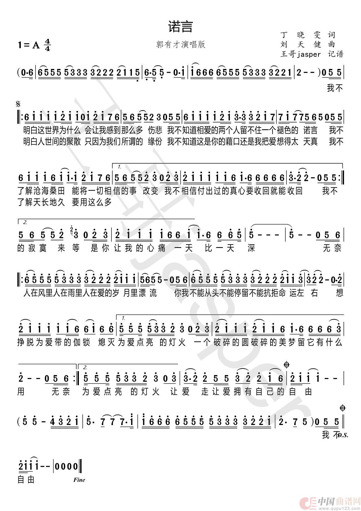 关于《诺言》曲谱的评论