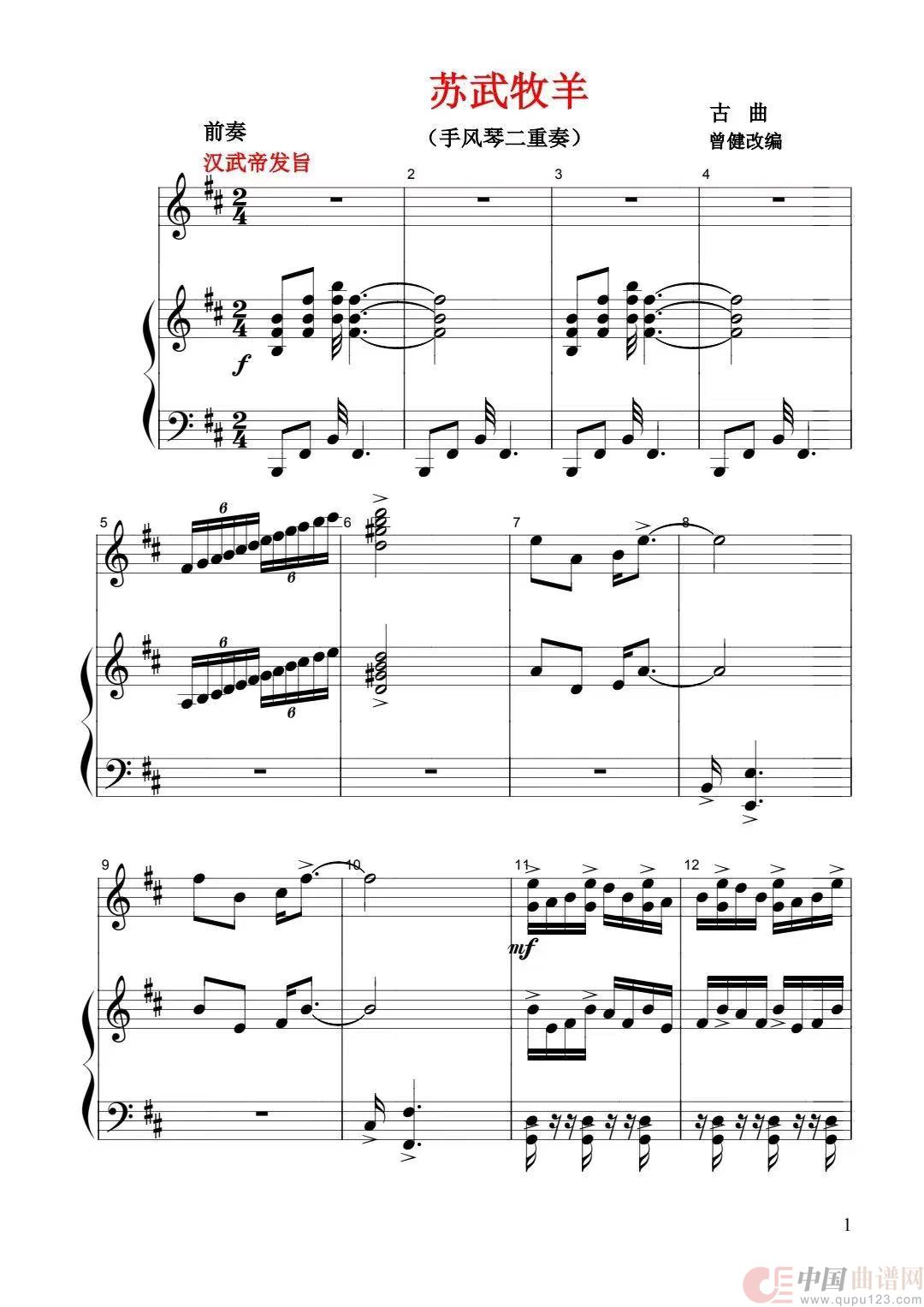 苏武牧羊(手风琴二重奏)(手风琴五线谱高清版)
