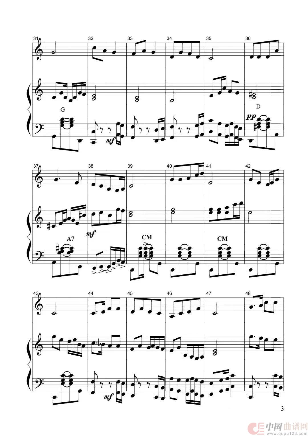 提示:在曲谱图片上单击右键,选择“图片另存为...”即可将曲谱保存到您的电脑中,打印时候可将图片插入到WORD中,调整合适大小打印即可。