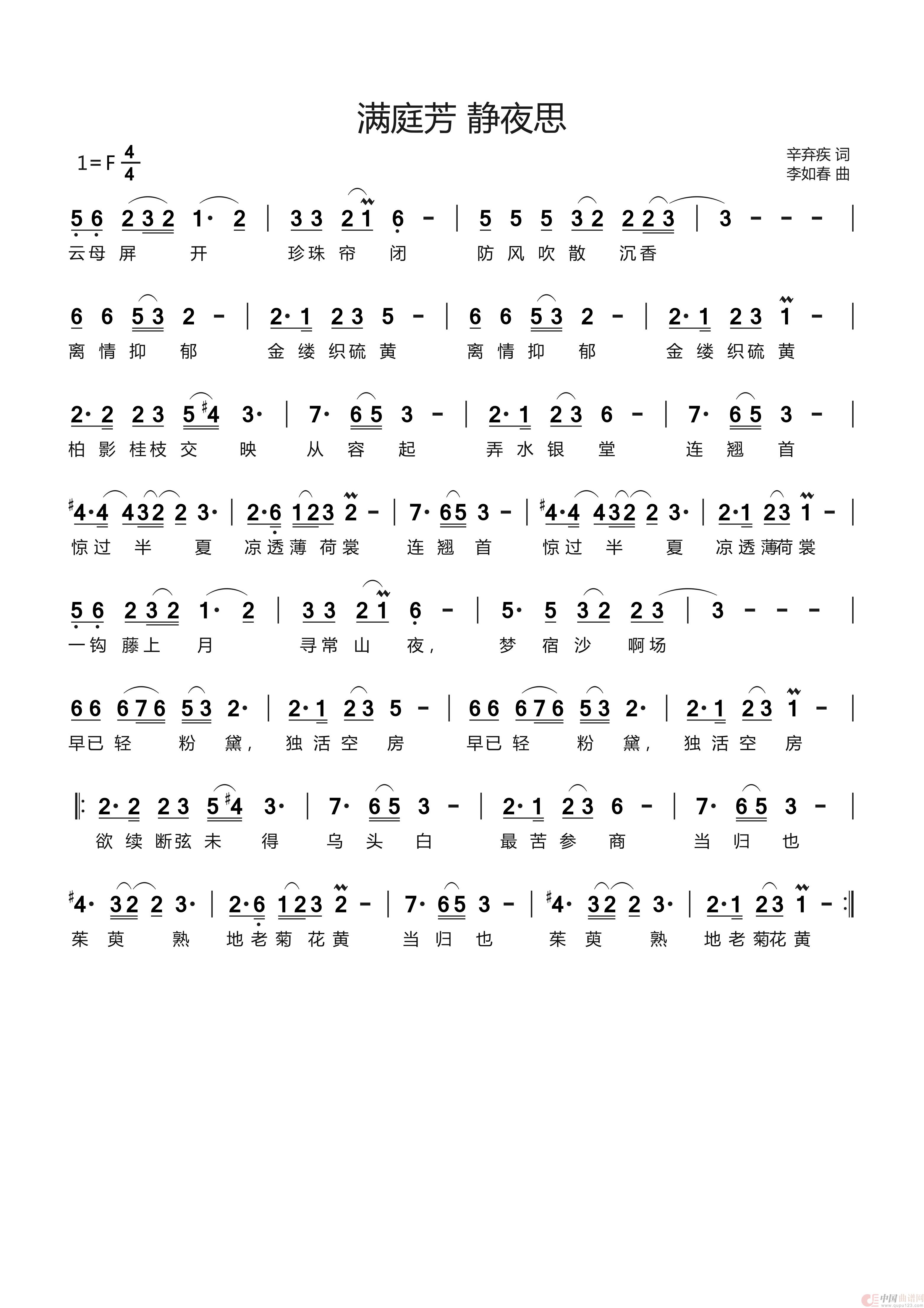 提示:在曲谱图片上单击右键,选择“图片另存为...”即可将曲谱保存到您的电脑中,打印时候可将图片插入到WORD中,调整合适大小打印即可。