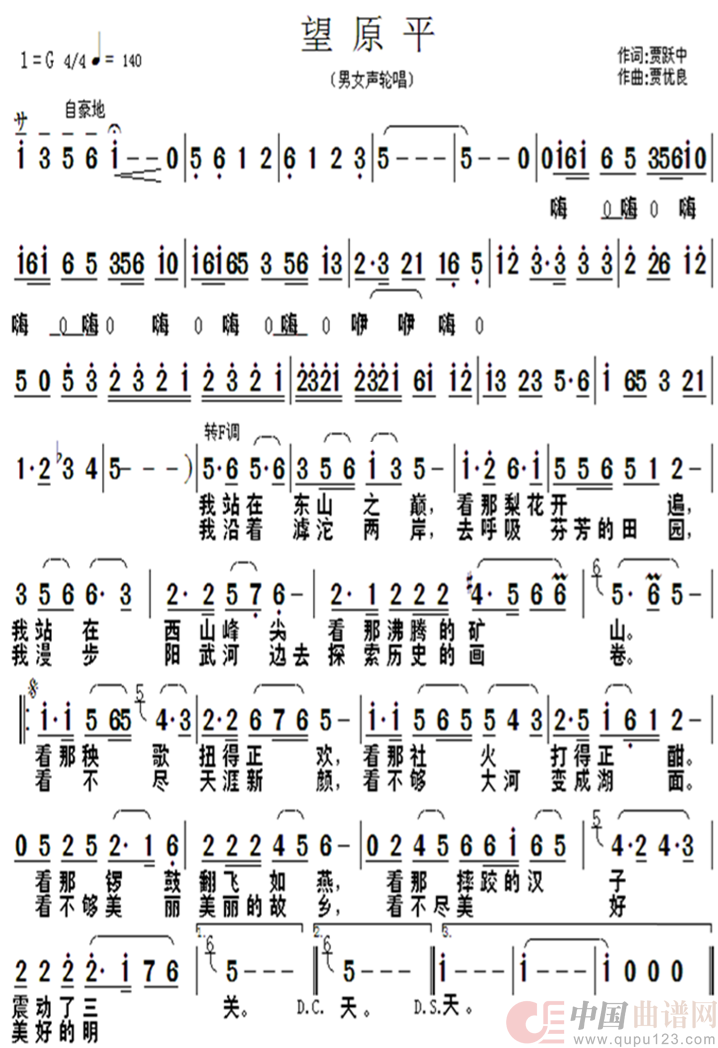 作词:贾跃中 作曲:贾优良 来源:2016年用作曲大师软件打谱 上传:路志宏