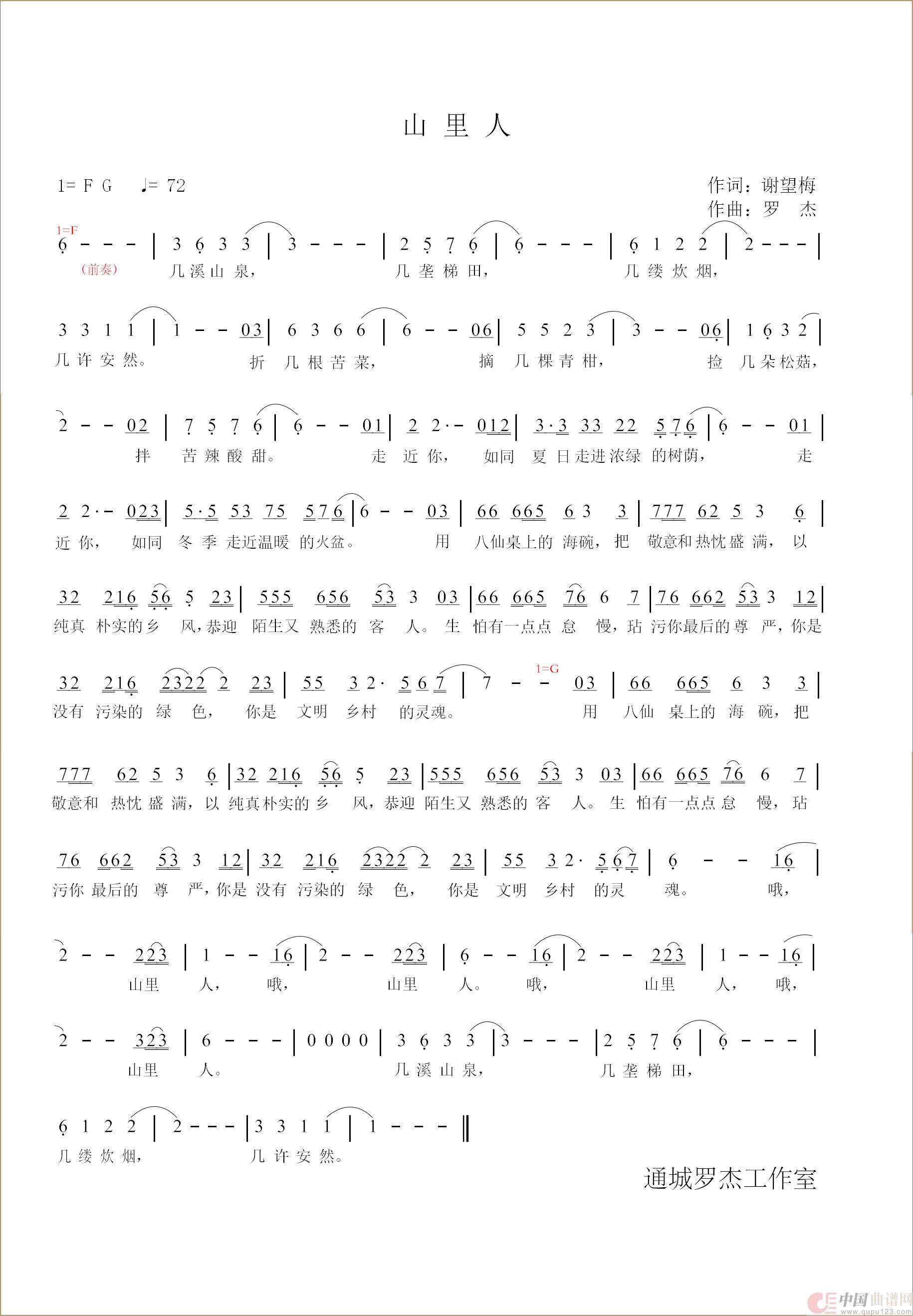关于《山里人》曲谱的评论