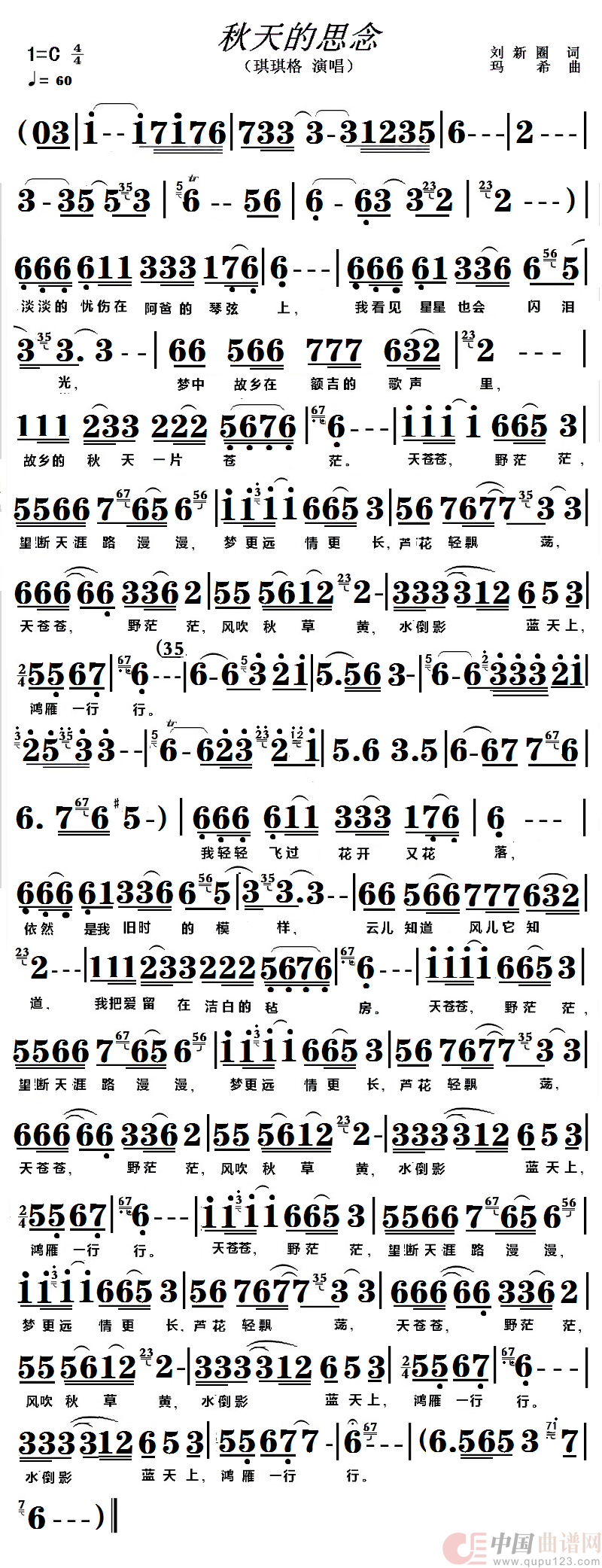关于《《秋天的思念》》曲谱的评论
