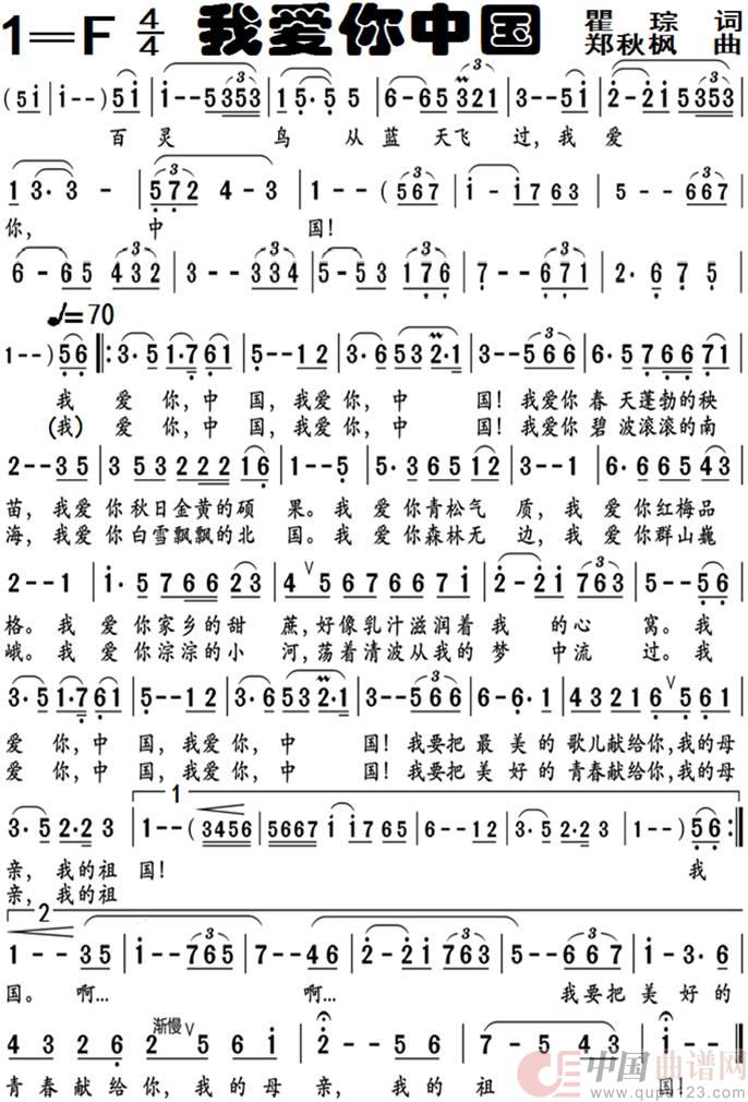 关于《我爱你中国》曲谱的评论