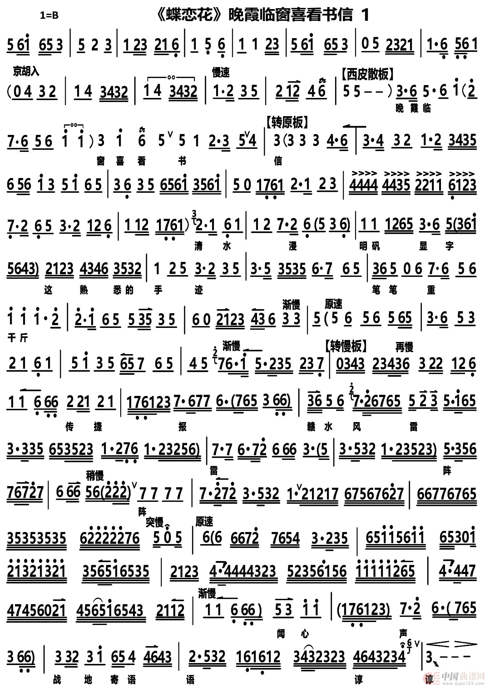 关于《《蝶恋花》晚霞临窗喜看书信》曲谱的评论