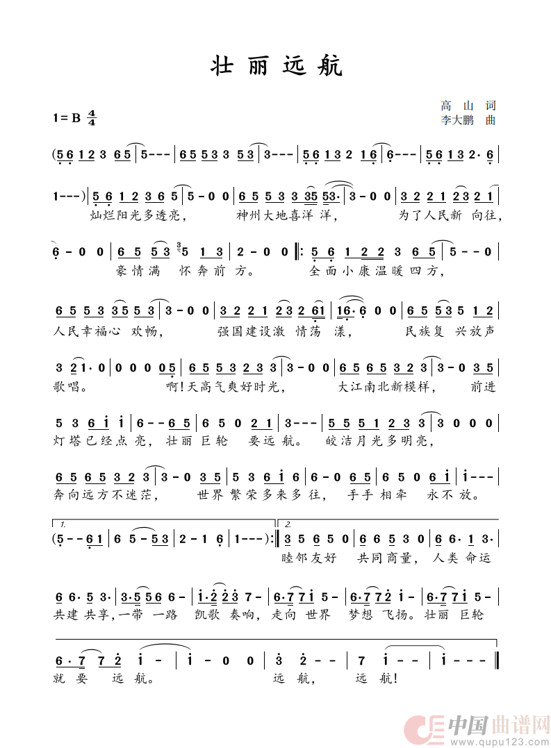 关于《《壮丽远航》(高山词 李大鹏曲)》曲谱的评论