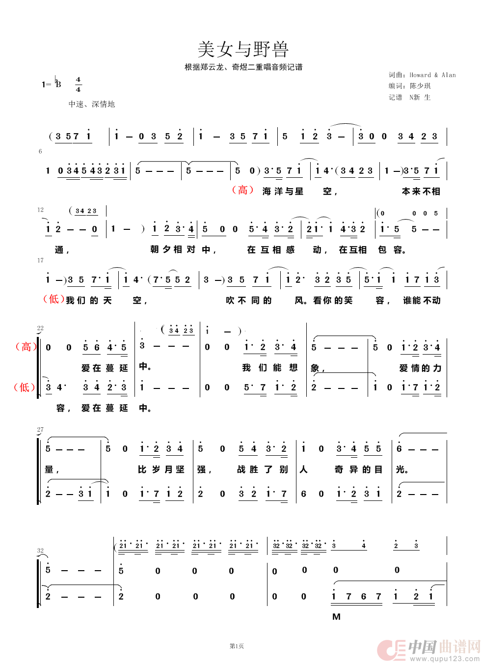 提示:在曲谱图片上单击右键,选择“图片另存为...”即可将曲谱保存到您的电脑中,打印时候可将图片插入到WORD中,调整合适大小打印即可。