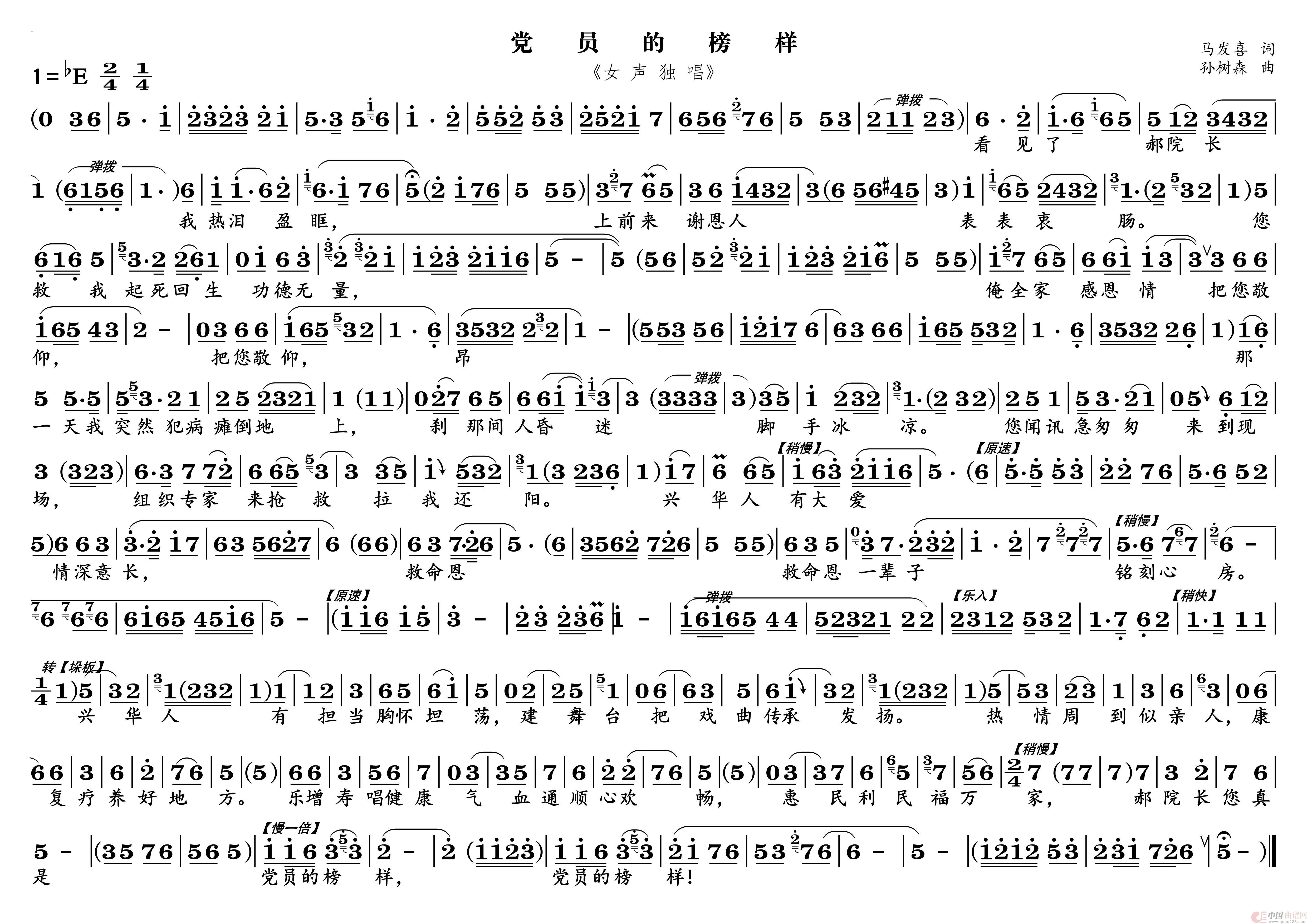 关于《党员的榜样》曲谱的评论