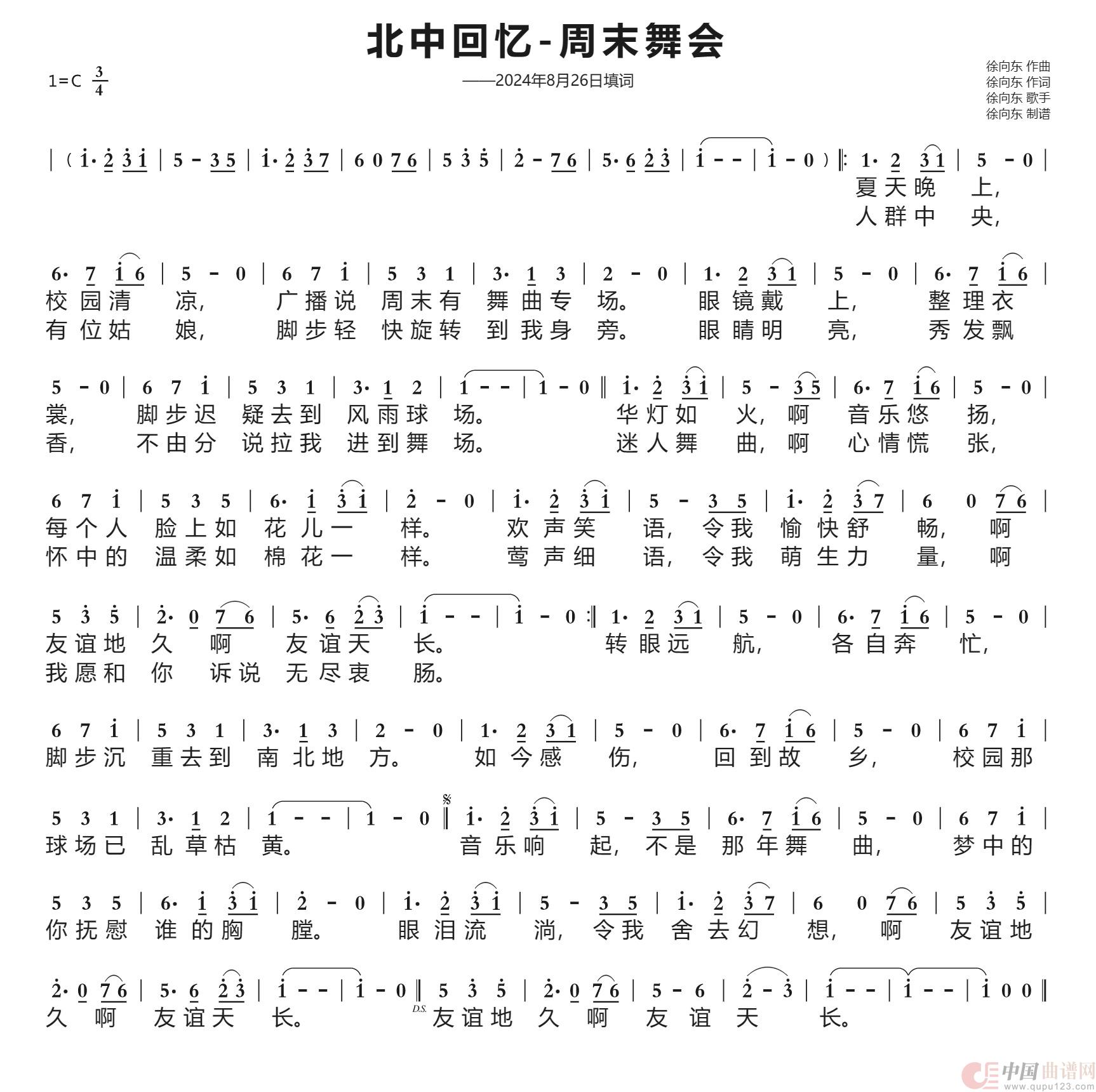 《北中回忆-周末舞会(徐向东词曲)》文本歌词