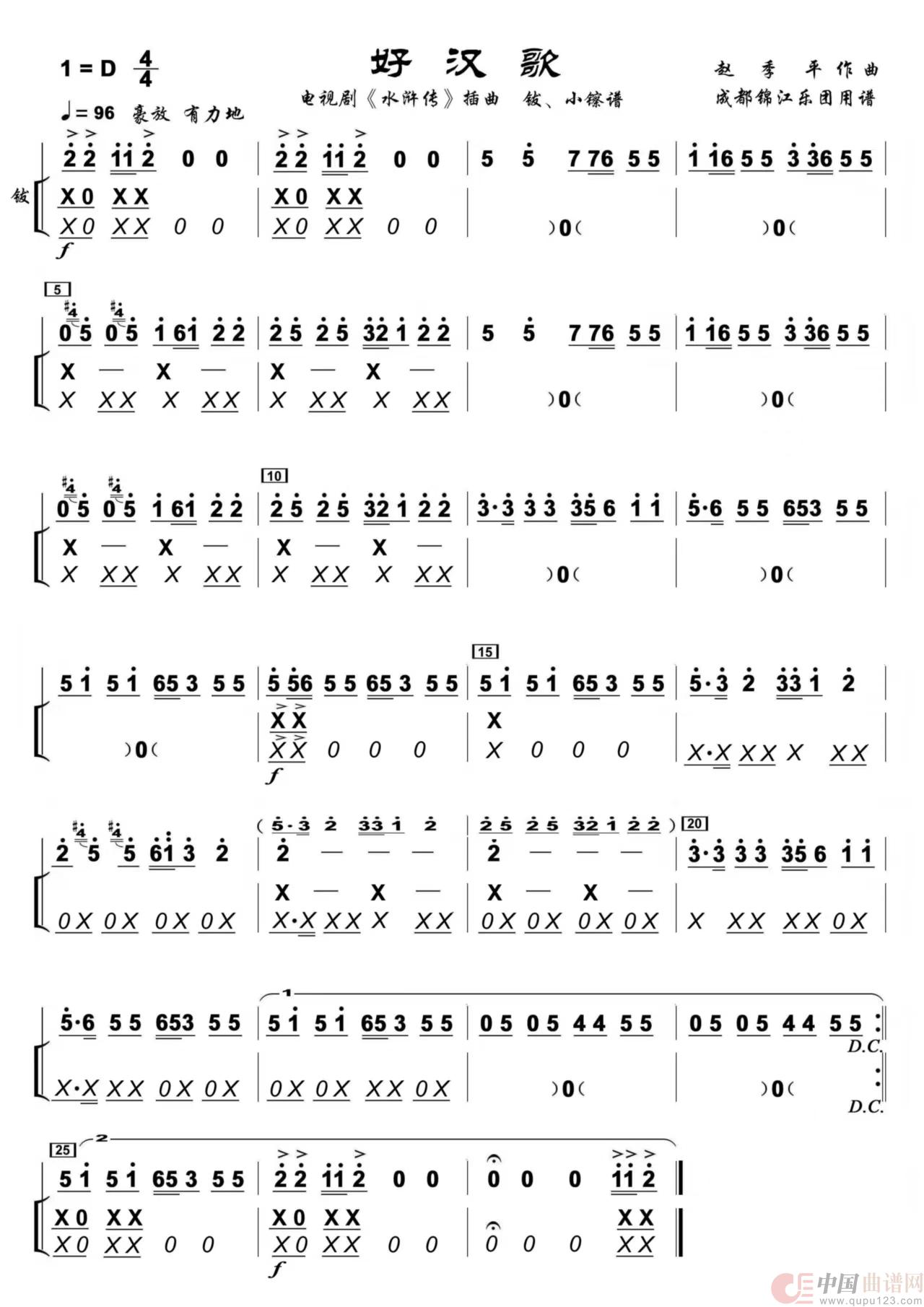 关于《好汉歌》曲谱的评论