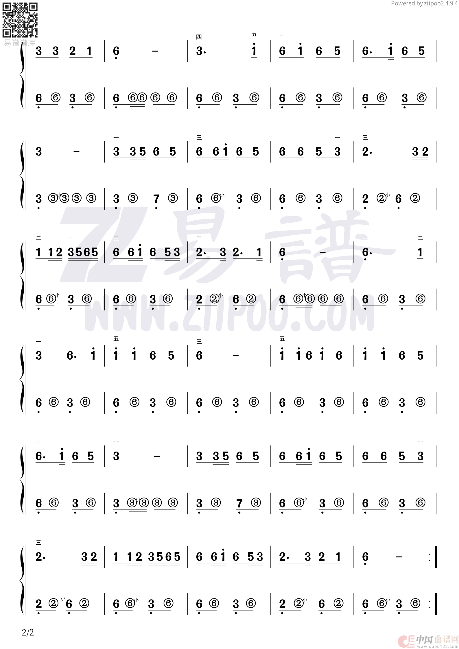 提示:在曲谱图片上单击右键,选择“图片另存为...”即可将曲谱保存到您的电脑中,打印时候可将图片插入到WORD中,调整合适大小打印即可。