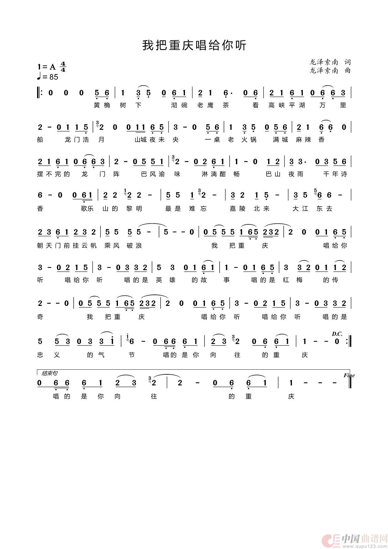 关于《我把重庆唱给你听》曲谱的评论