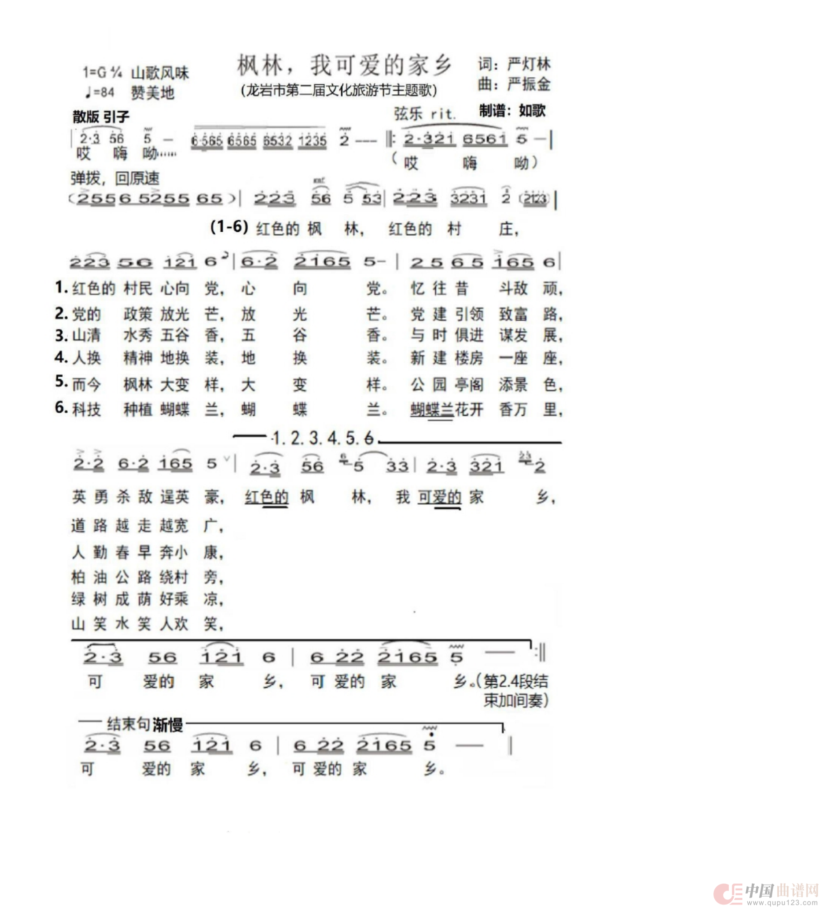 作词:严灯林 作曲:严振金 演唱(奏):彭琴 来源:词曲作者 上传:如歌319