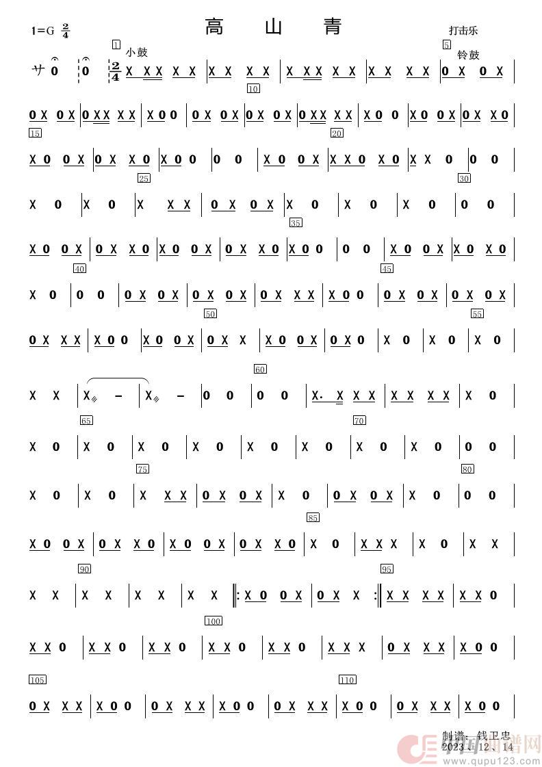 高山青-打击乐分谱1-2(俊杰根据录音记谱)