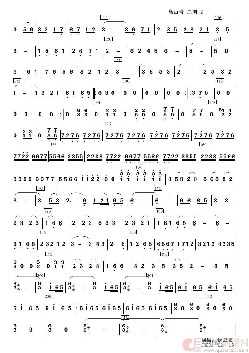 高山青-二胡分谱1-2(俊杰根据录音记谱)