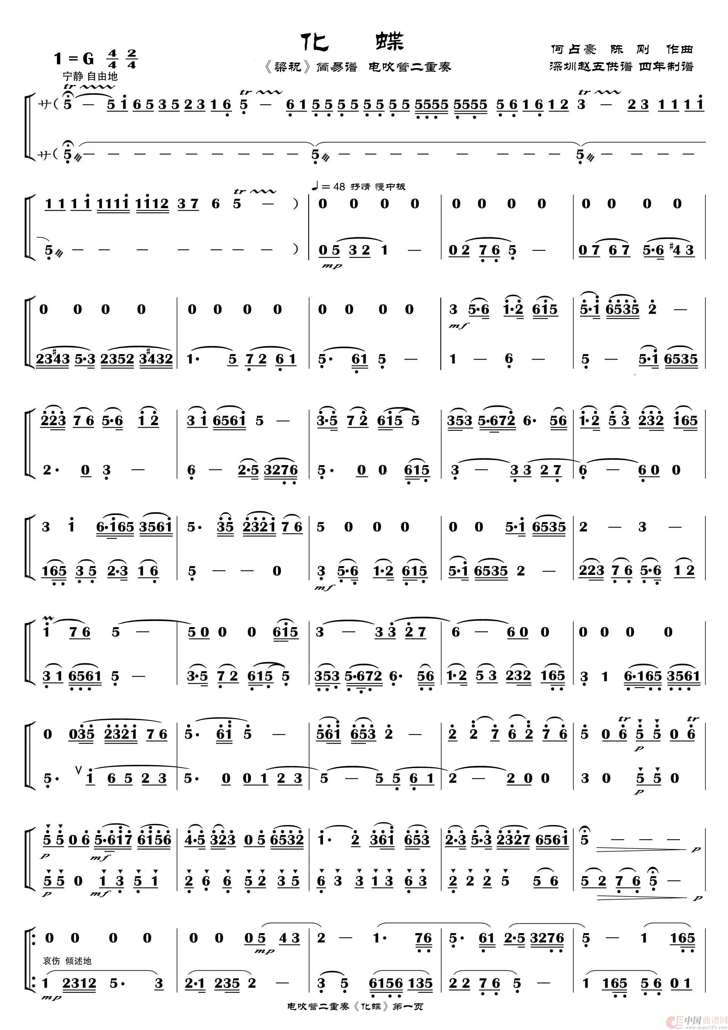 关于《化蝶(电吹管二重奏)》曲谱的评论