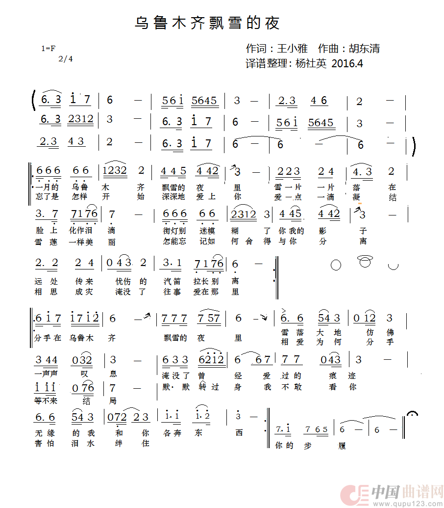 关于《乌鲁木齐飘雪的夜》曲谱的评论