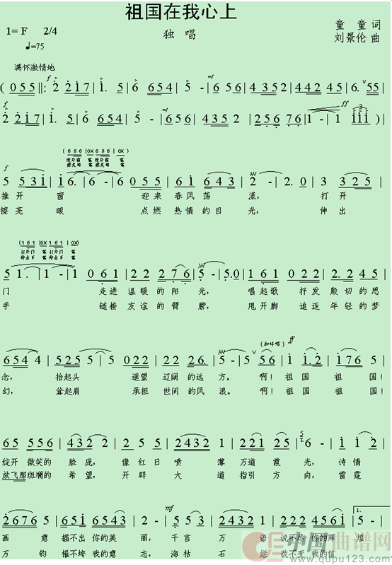 关于《祖国在我心上》曲谱的评论