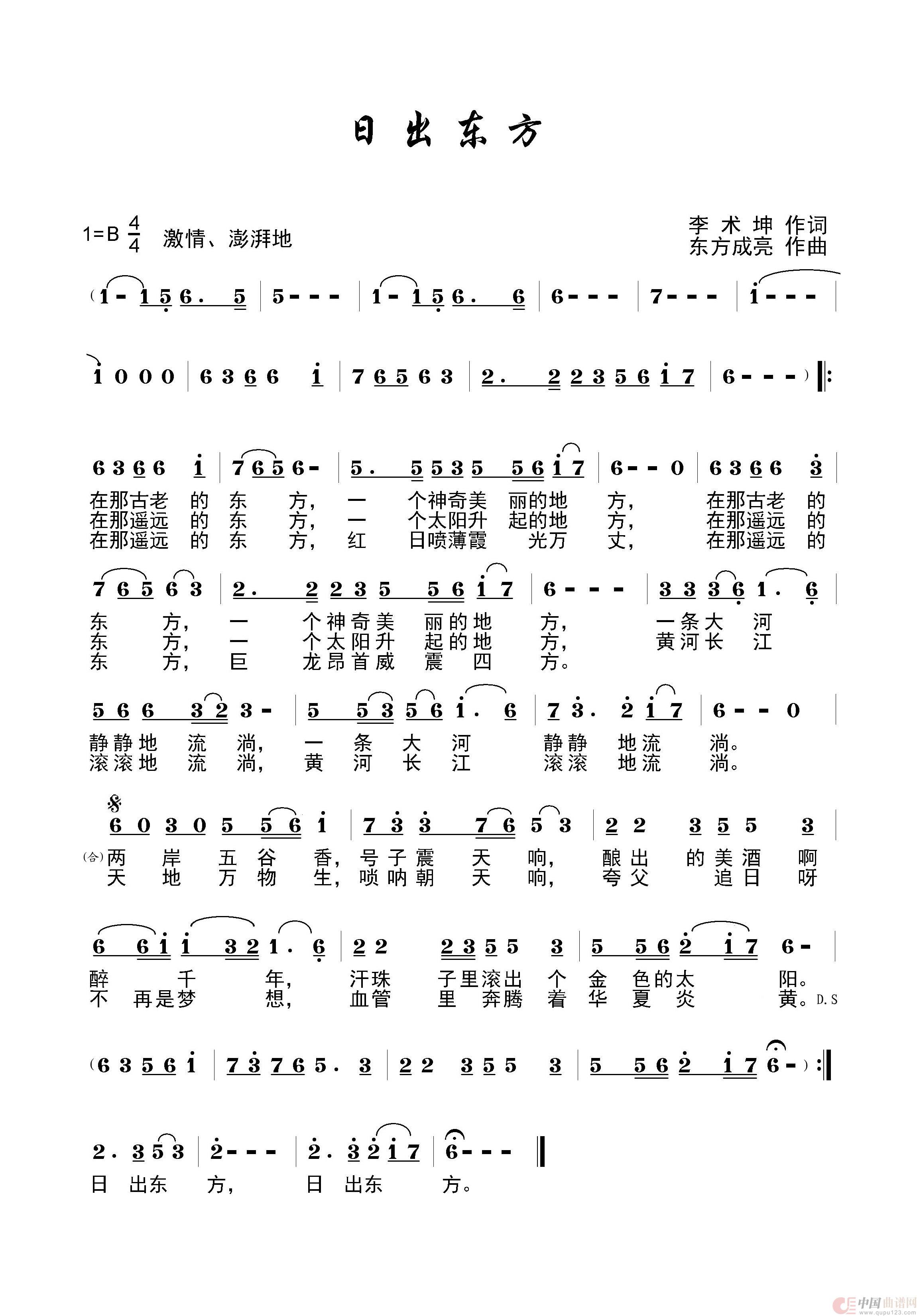 日出东方(1)_原文件名:日出东方歌谱.jpg
