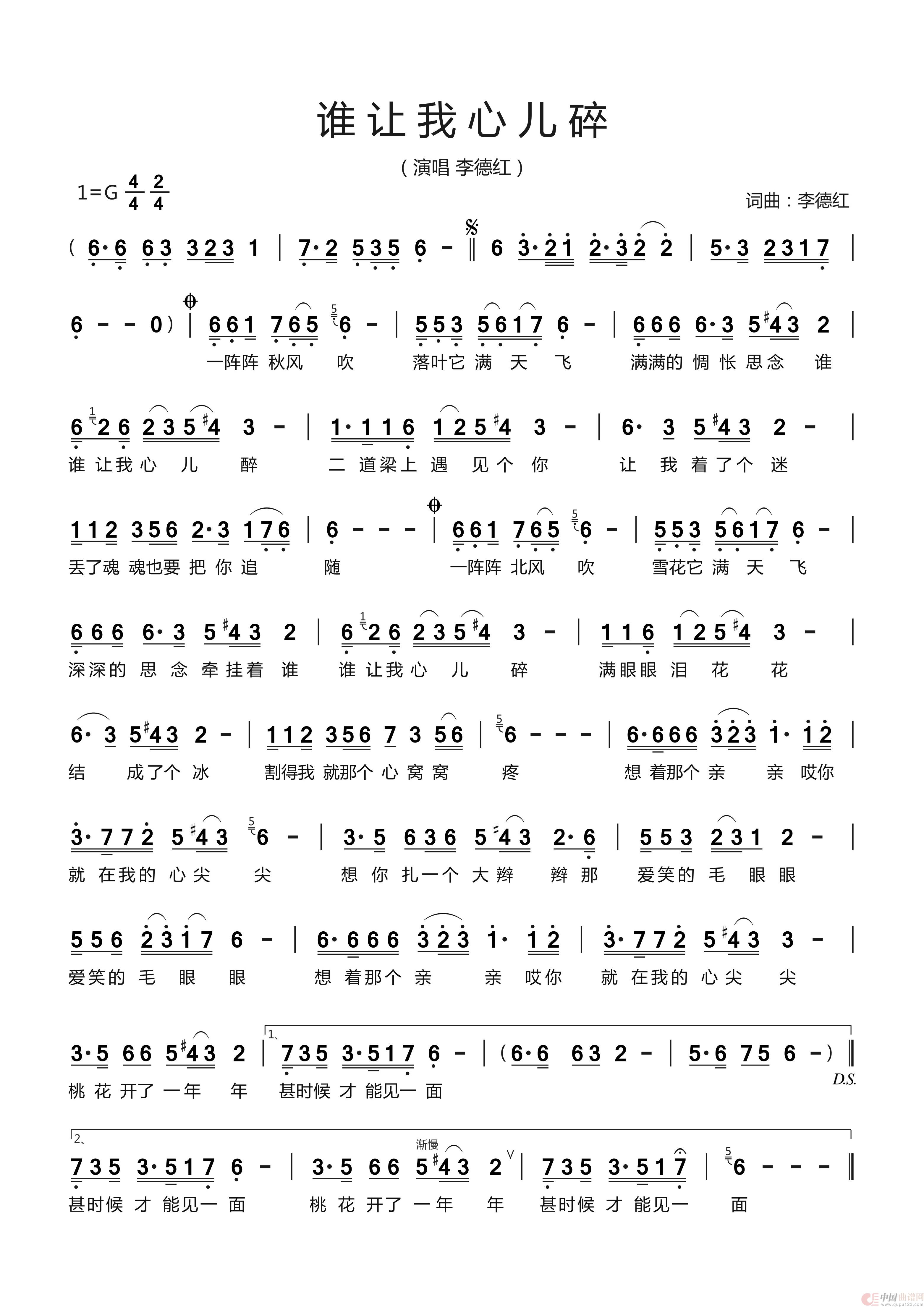 《谁让我心儿碎》作词:李德红、作曲:李德红、演唱:李德红,歌曲主要讲述了:那个年代一后生的一段爱情故事。