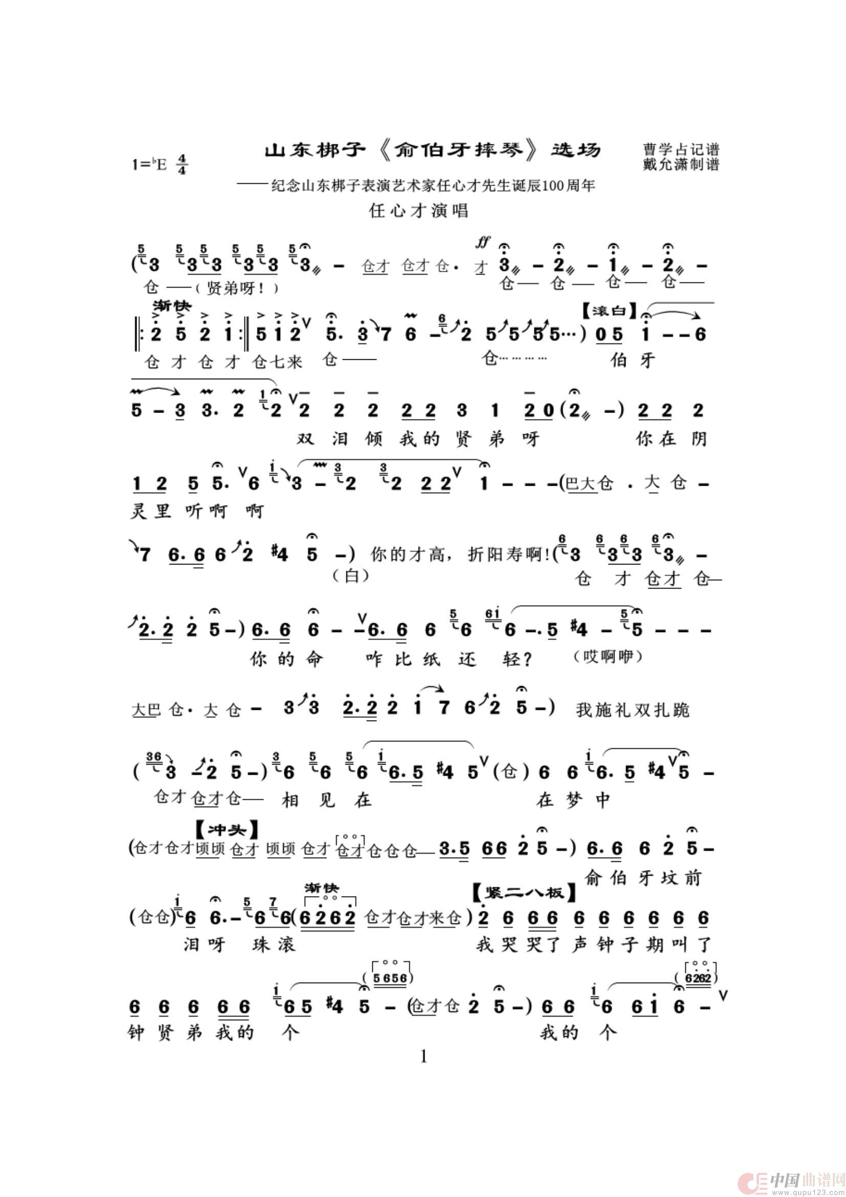 关于《俞伯牙摔琴》曲谱的评论