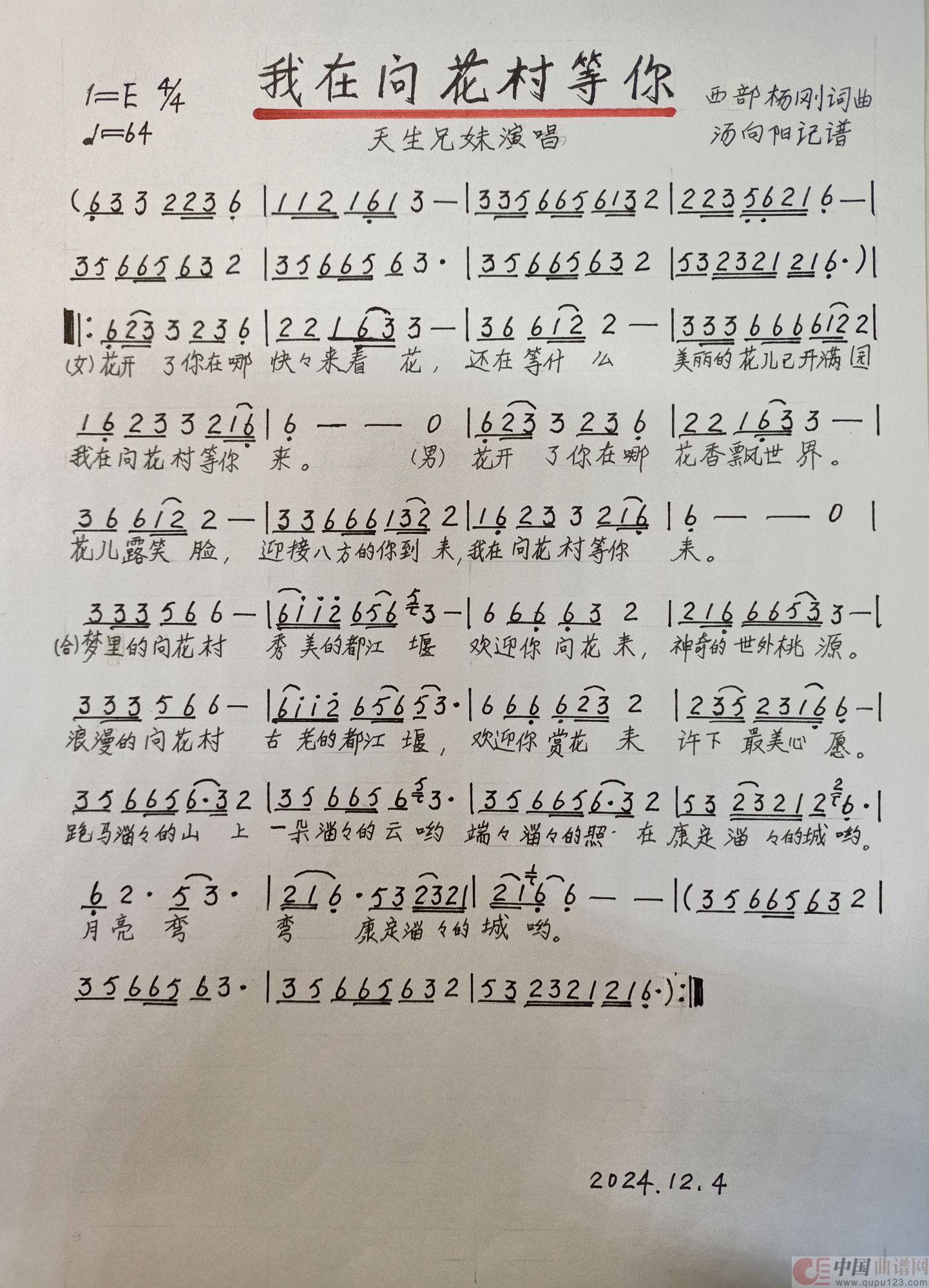 提示:在曲谱图片上单击右键,选择“图片另存为...”即可将曲谱保存到您的电脑中,打印时候可将图片插入到WORD中,调整合适大小打印即可。