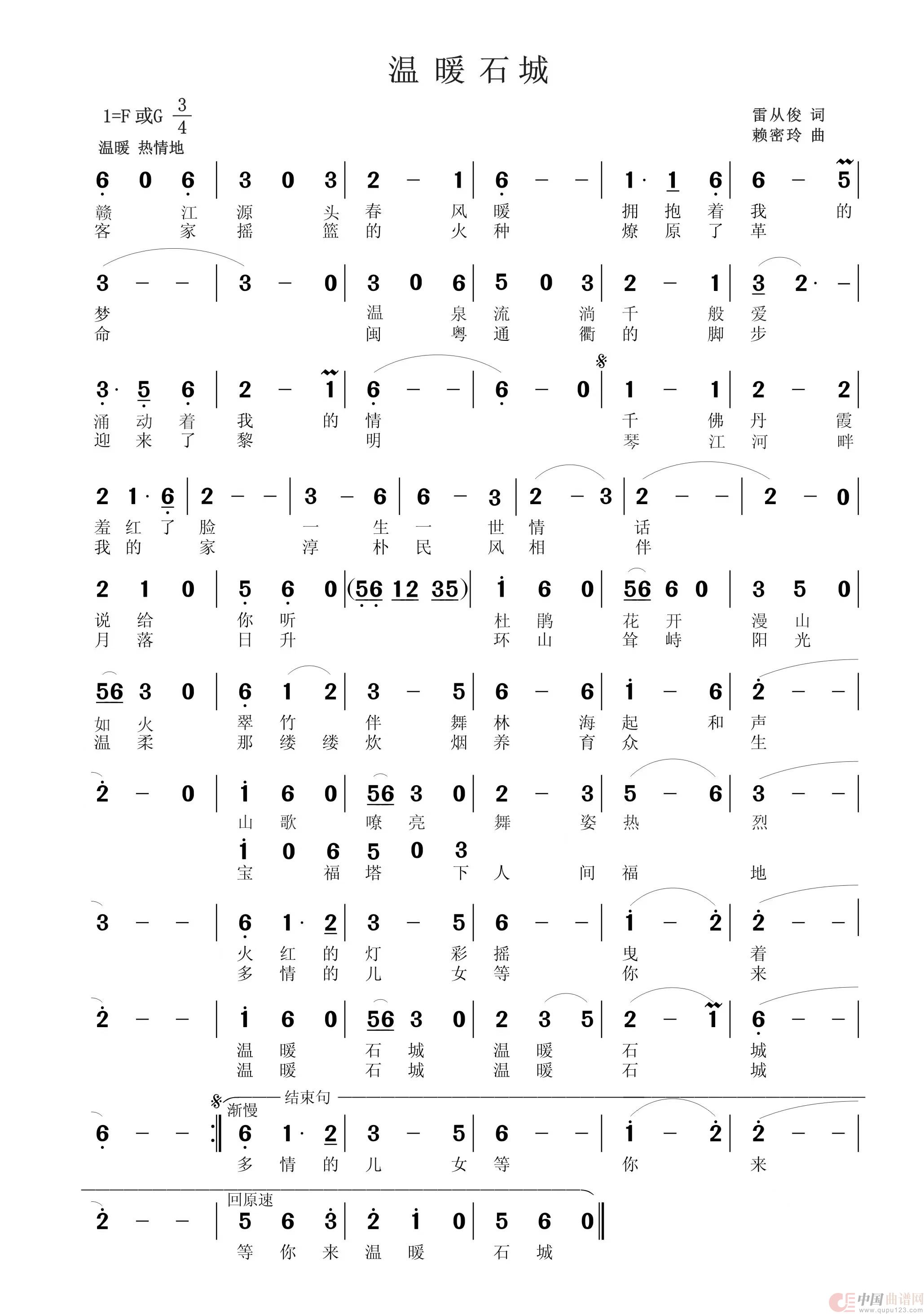 关于《温暖石城(江西石城原创歌曲)》曲谱的评论