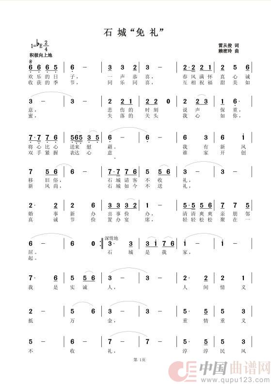 关于《石城免礼(江西石城原创歌曲)》曲谱的评论