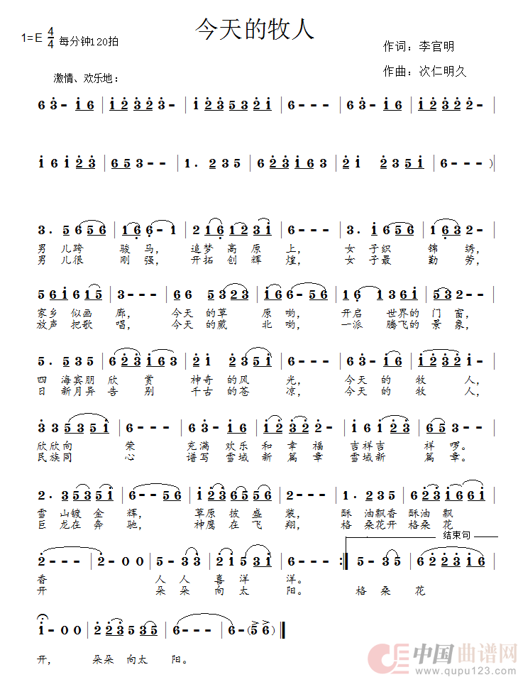 提示:在曲谱图片上单击右键,选择“图片另存为...”即可将曲谱保存到您的电脑中,打印时候可将图片插入到WORD中,调整合适大小打印即可。