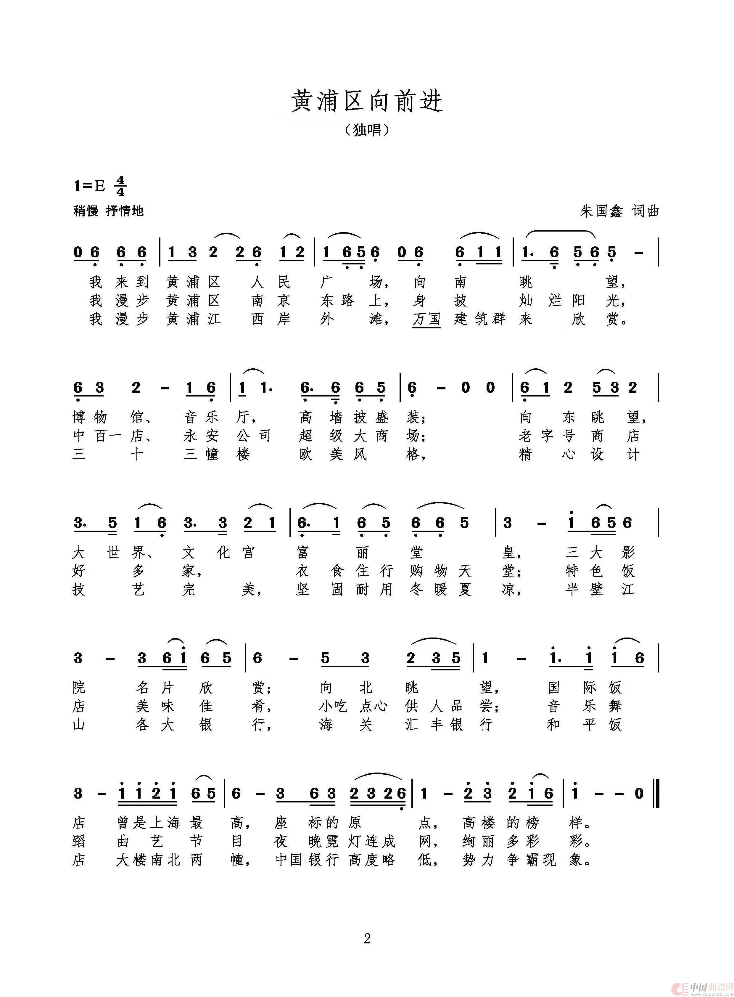 关于《黄浦区前进歌》曲谱的评论