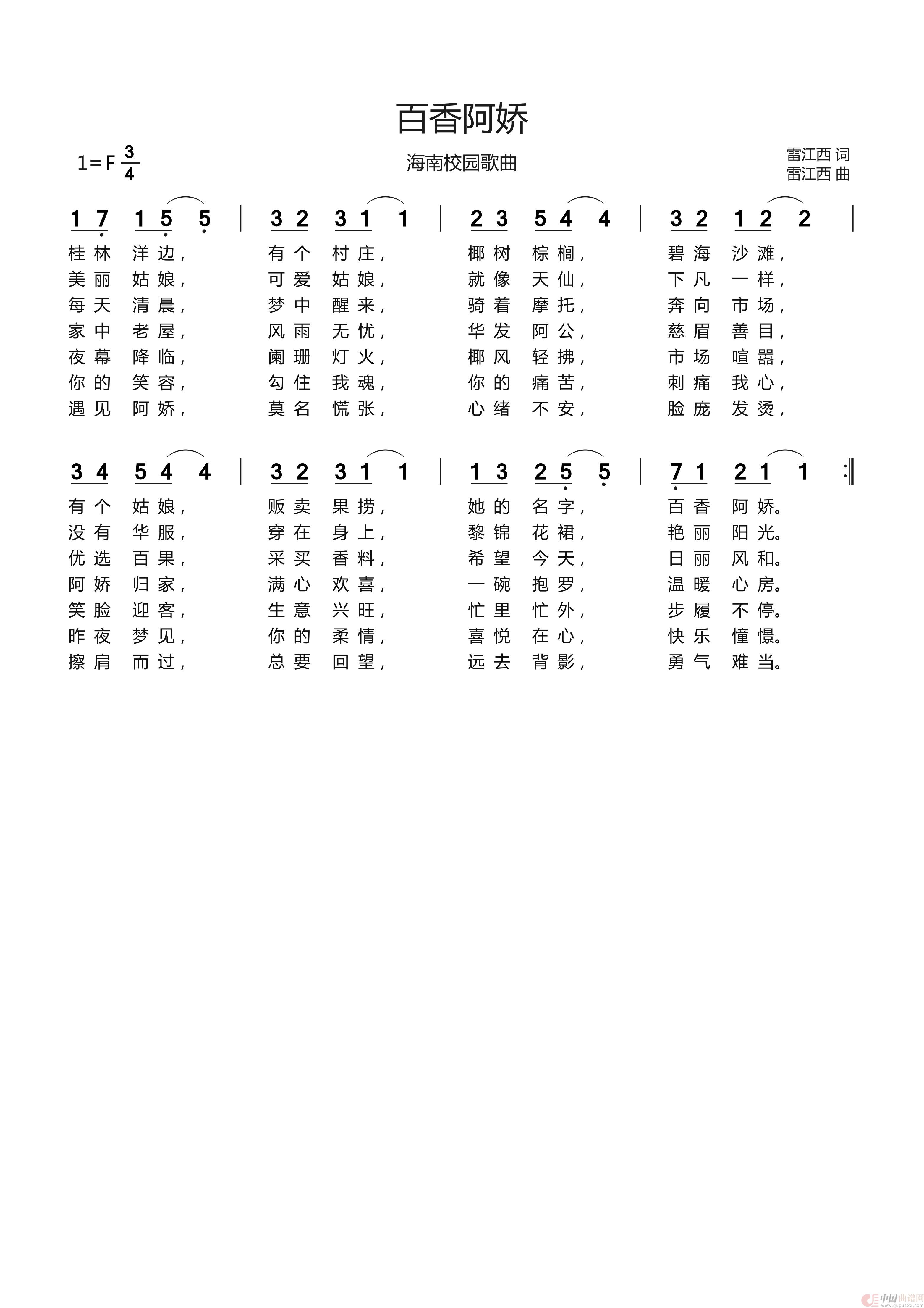 《百香阿娇》文本歌词
