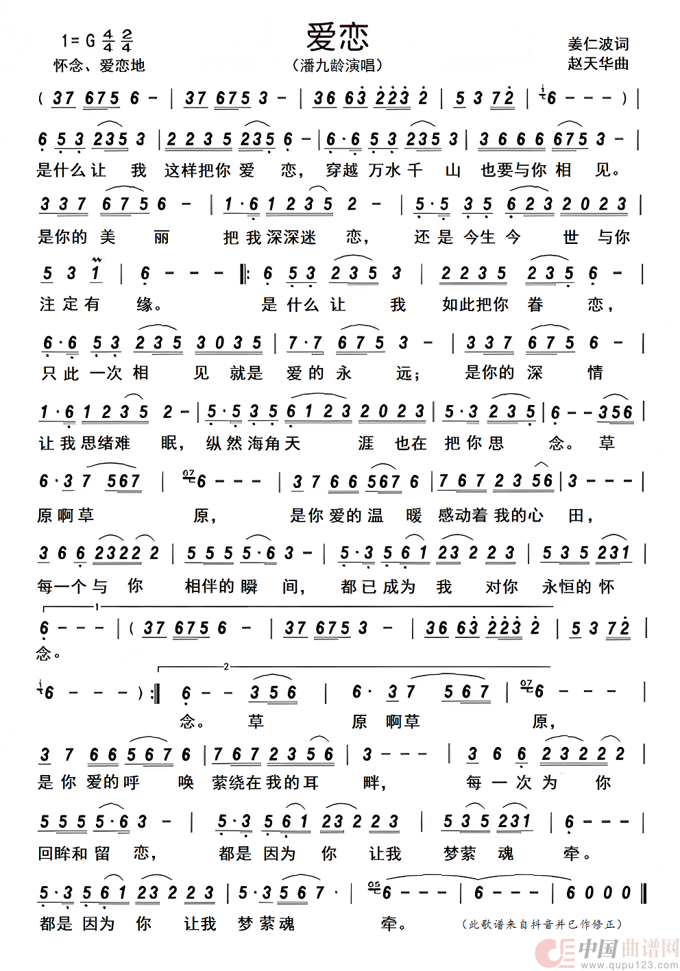 曲谱来自抖音记谱者不详。因歌词不清晰,重新输入歌词
