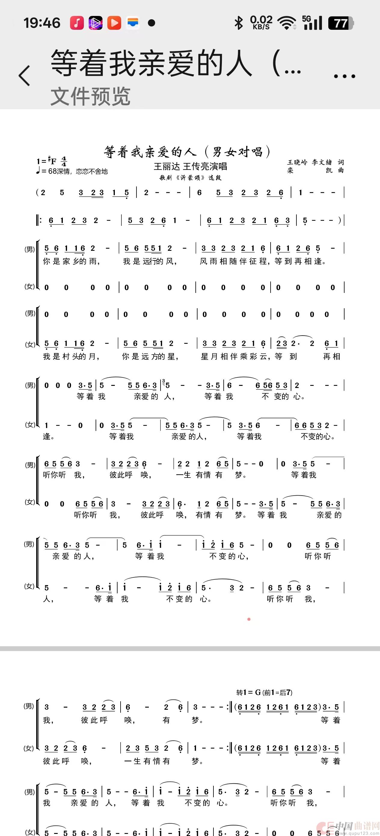 关于《等着我亲爱的人(男女对唱)》曲谱的评论
