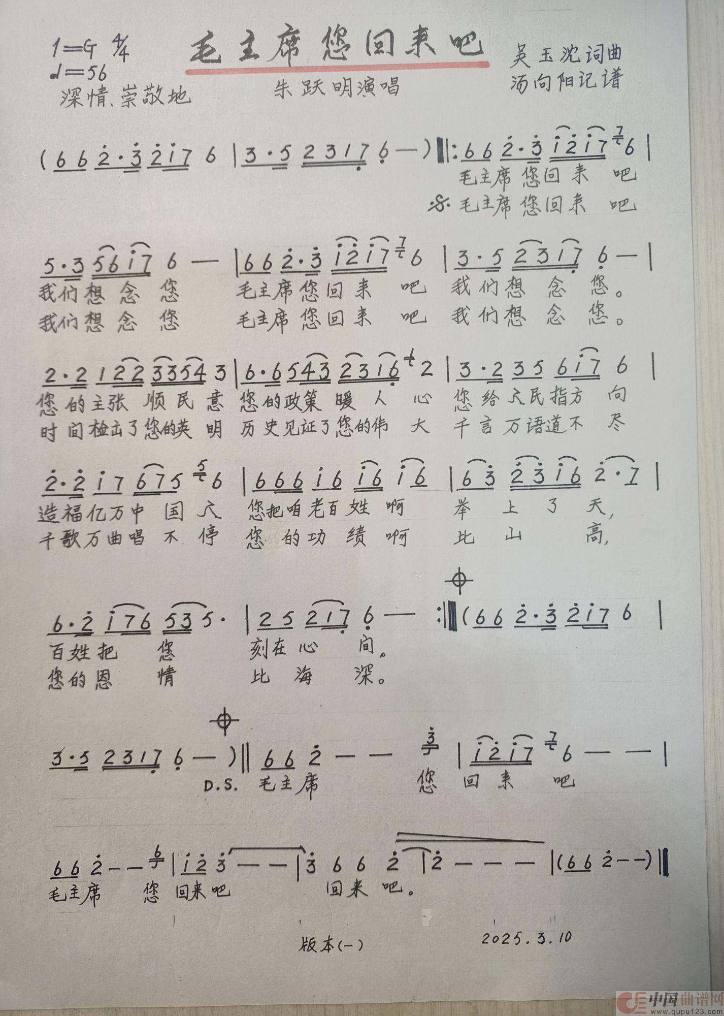 关于《毛主席您回来吧【版本1】》曲谱的评论