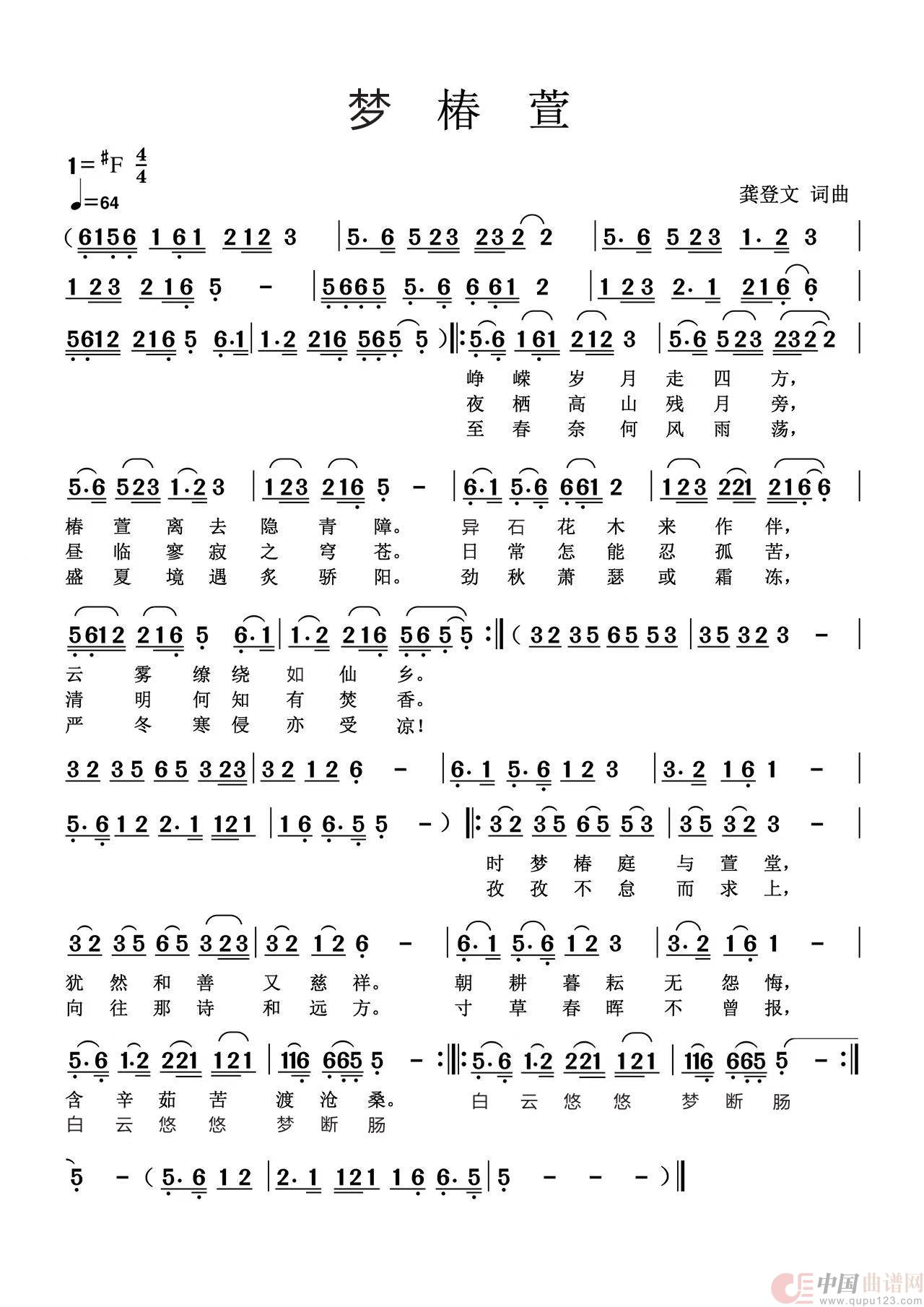 《梦椿萱》,龚登文词曲,蒋婴演唱。