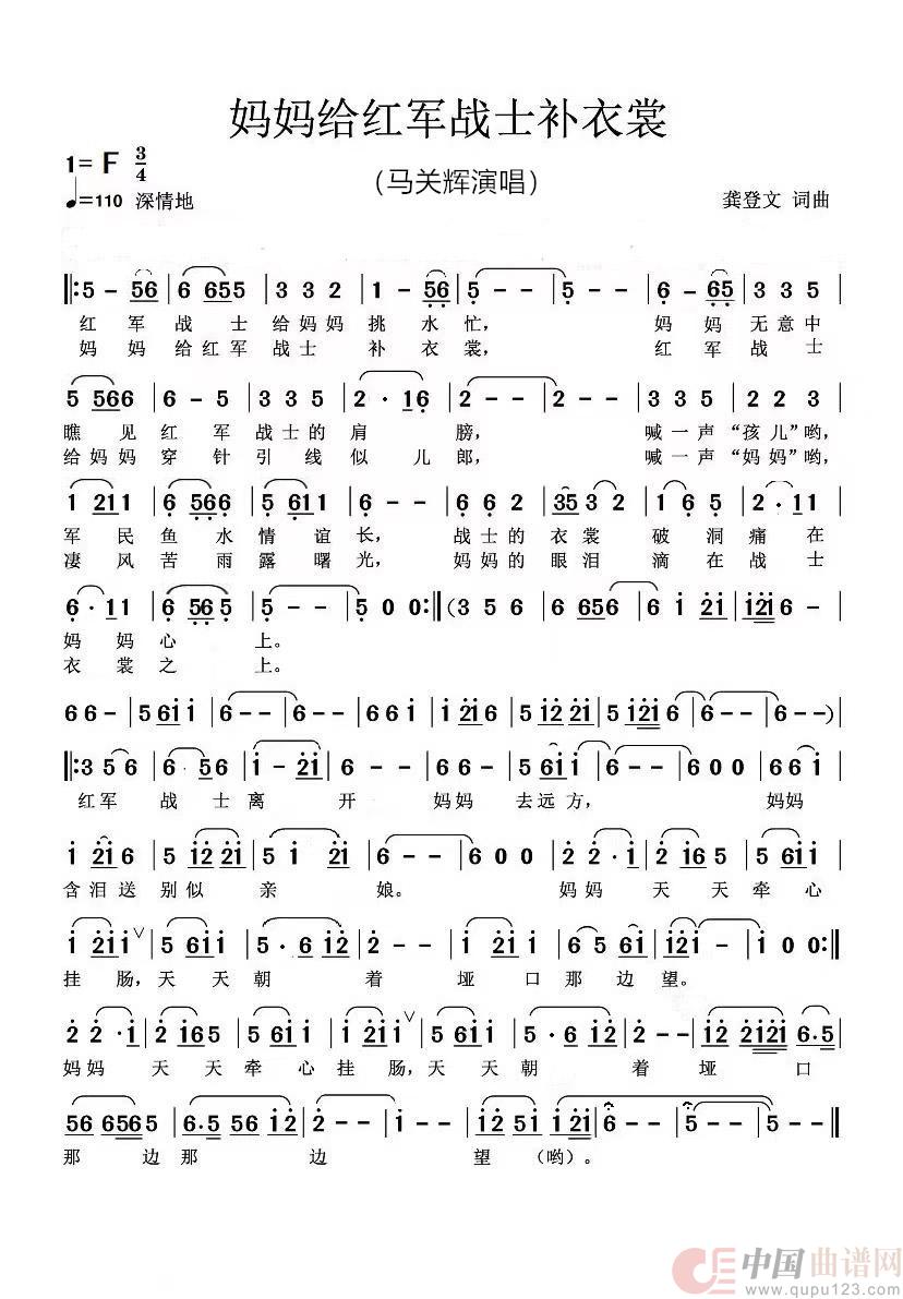 《妈妈给红军战士补衣裳》,龚登文词曲,马关辉演唱。