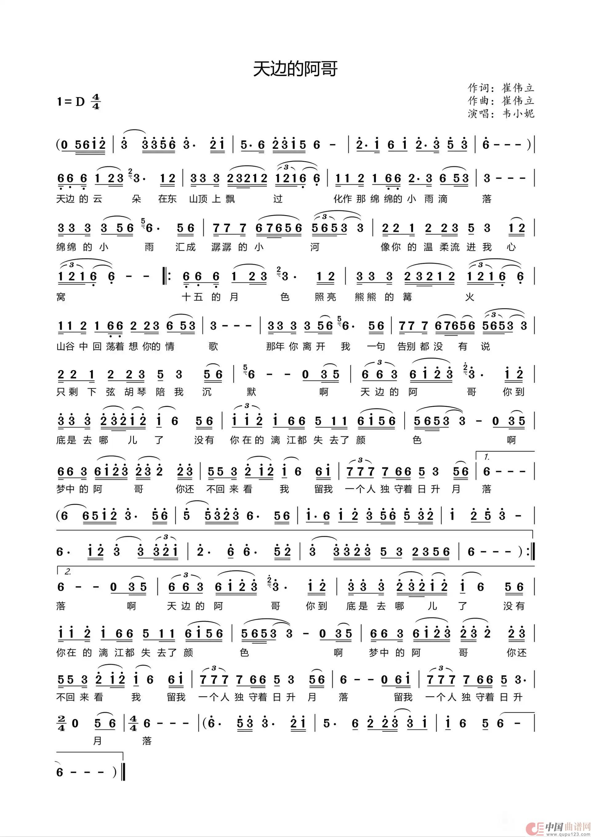 关于《韦小妮《天边的阿哥》》曲谱的评论
