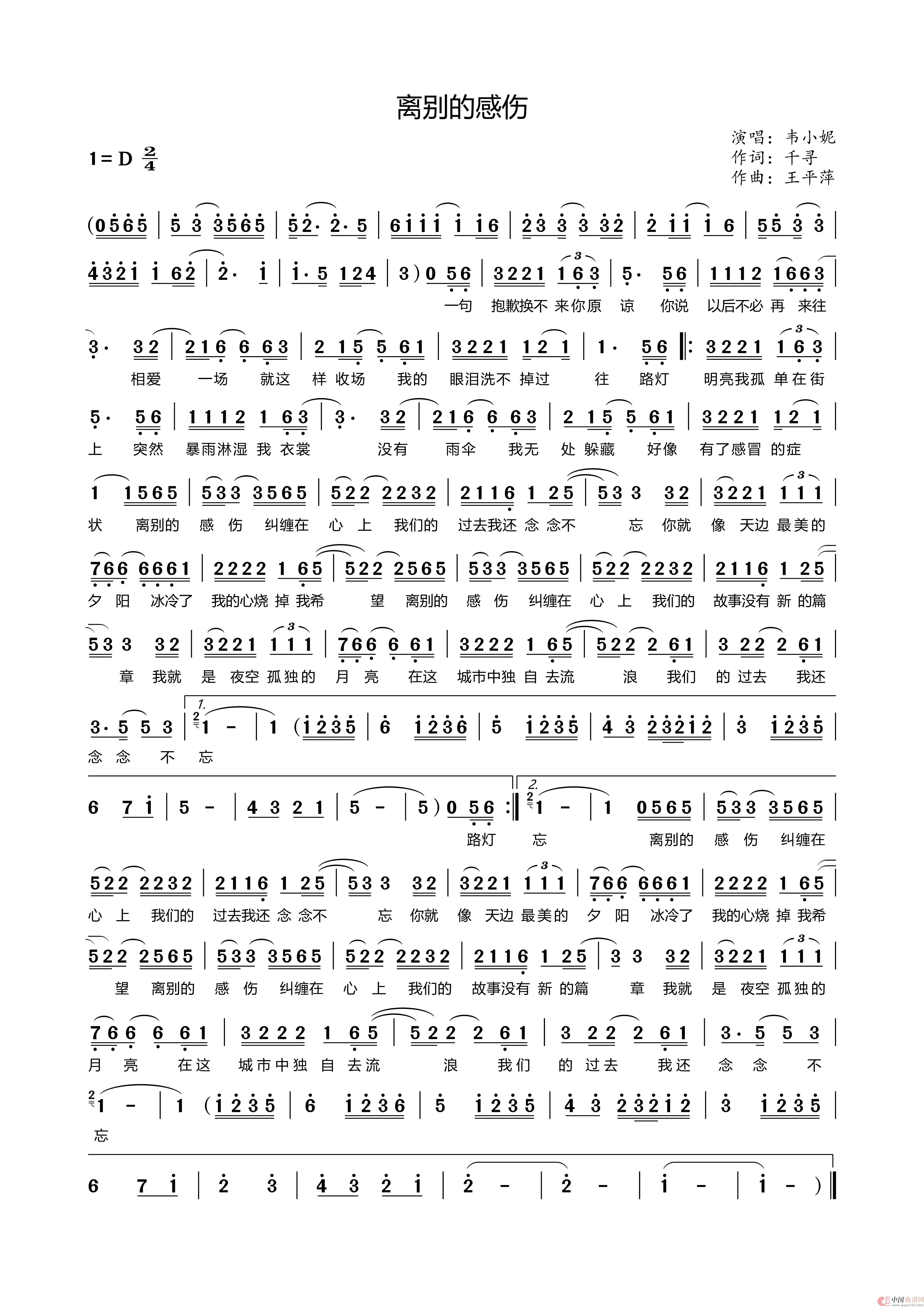 关于《韦小妮《离别的感伤》》曲谱的评论
