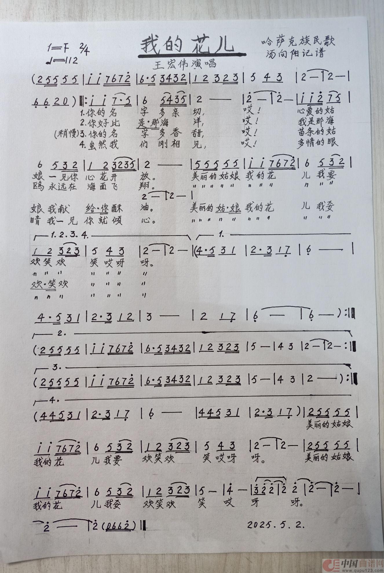 关于《我的花儿》曲谱的评论