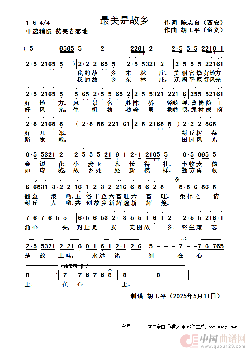 关于《最美是故乡》曲谱的评论