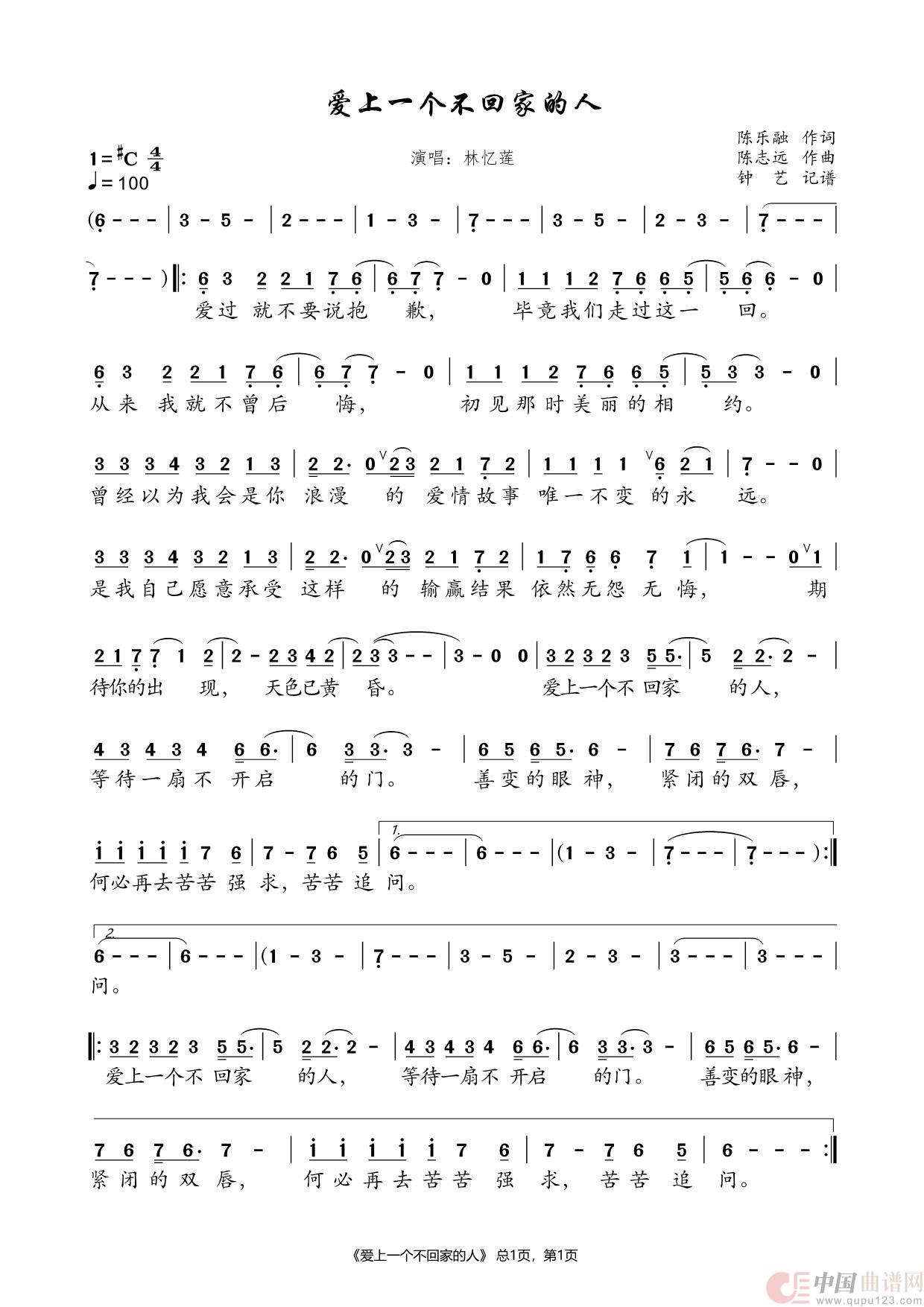 关于《爱上一个不回家的人》曲谱的评论