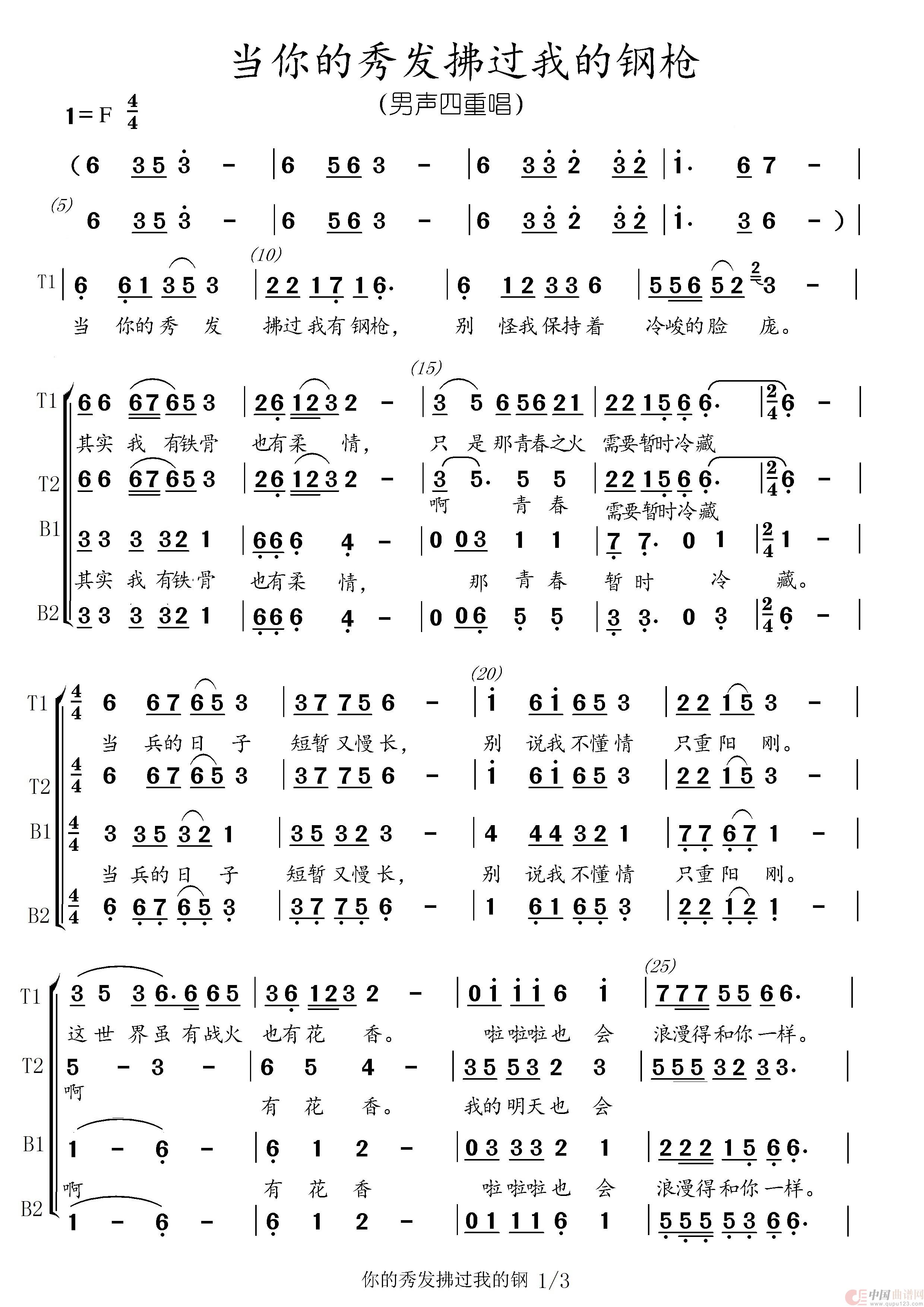 当你的秀发拂过我的钢枪(男声四重唱)