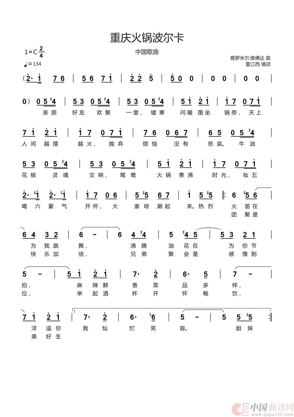 《啤酒桶波尔卡》是欧洲最流行的波尔卡舞曲之一,是世界著名的管弦乐作品,演奏形式是“铜管五重奏”。它一首非常欢快的曲子,而且相同的乐句不断反复。整首曲子旋律富有动感,节奏欢快、活泼。给人以一种丰收后的喜悦,立即联想到节日来临时人们脸上洋溢笑容,围在一起载歌载舞的狂欢情景。这是一首单声部歌曲。二二拍的舞曲节拍,速度较快,使得整首歌曲的旋律轻快,有弹性。歌曲前半部分采用陈述方式,描述了有这样一个环境,使得很多人都能忘记忧愁尽情舞蹈,后半部分则表达了大家聚在一起跳舞,狂欢的情景,体现出人们跳起波尔卡忘记不愉快的事情、获得单纯的快乐。重庆火锅波尔卡以汉语填词而成。