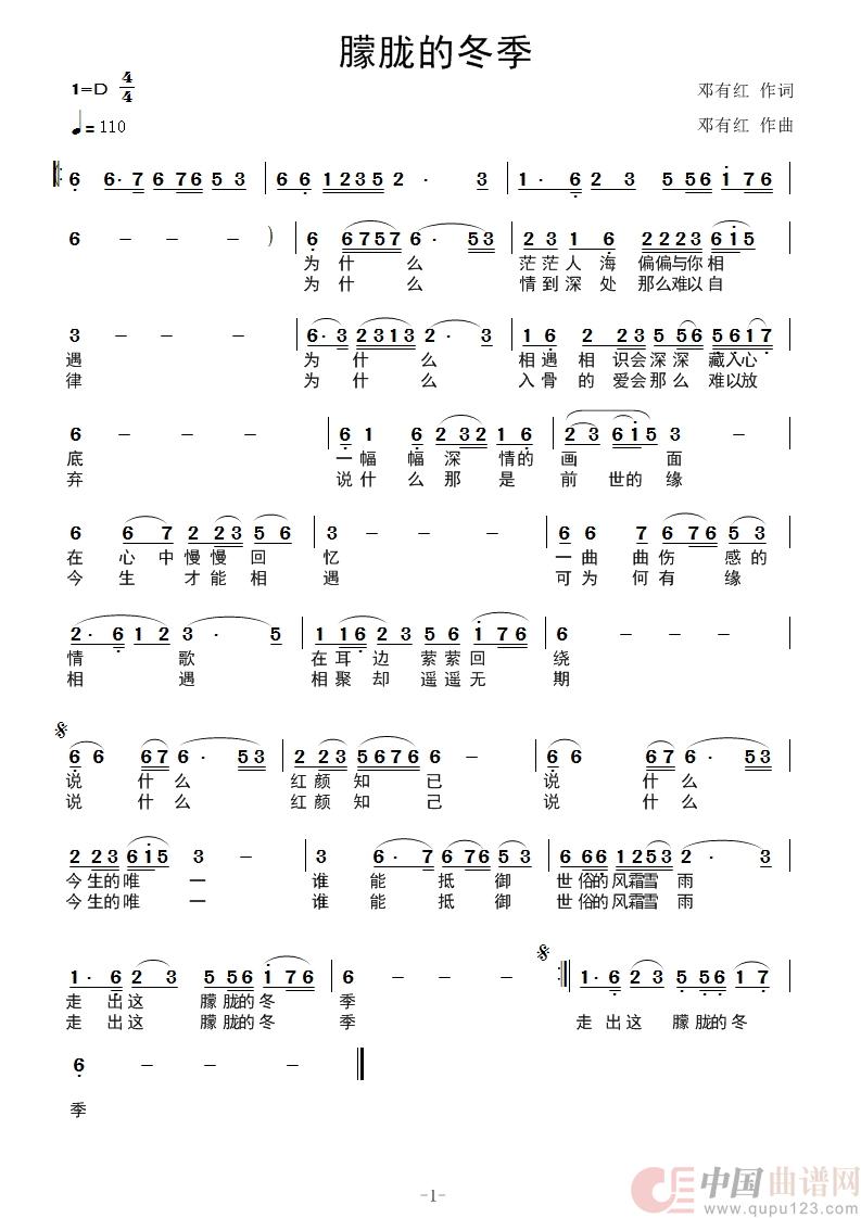 关于《朦胧的冬季》曲谱的评论