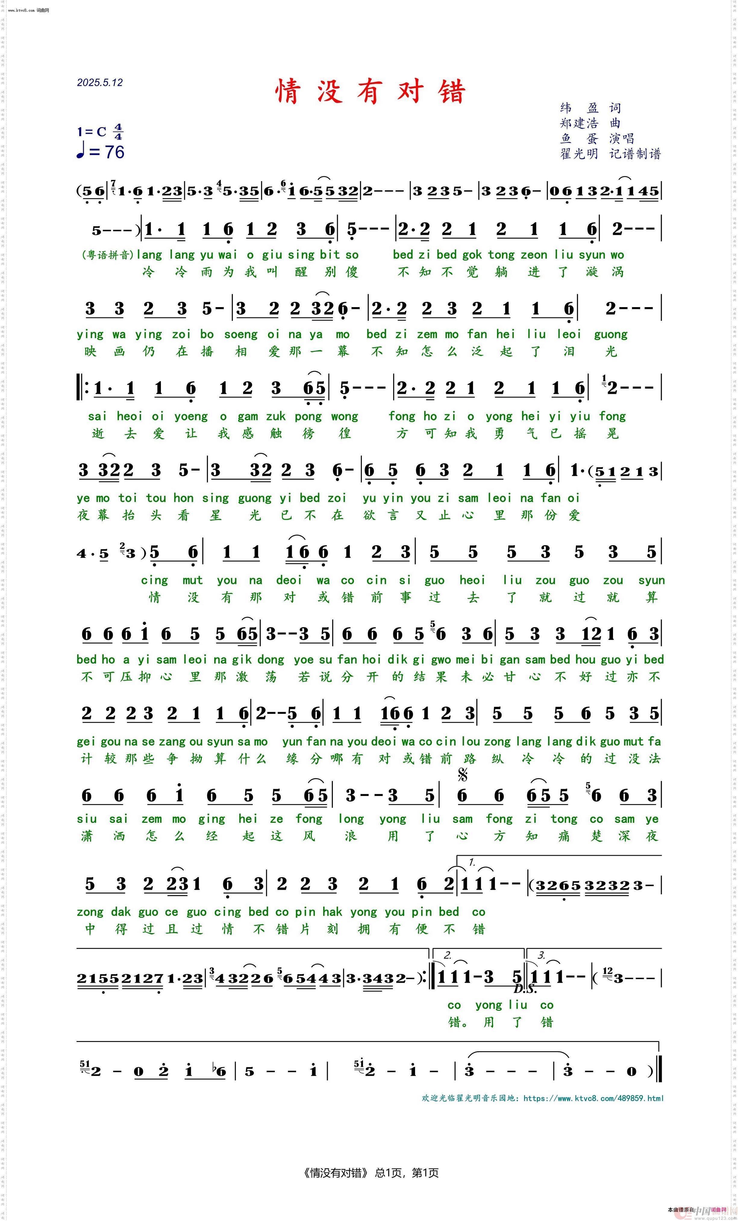 提示:在曲谱图片上单击右键,选择“图片另存为...”即可将曲谱保存到您的电脑中,打印时候可将图片插入到WORD中,调整合适大小打印即可。