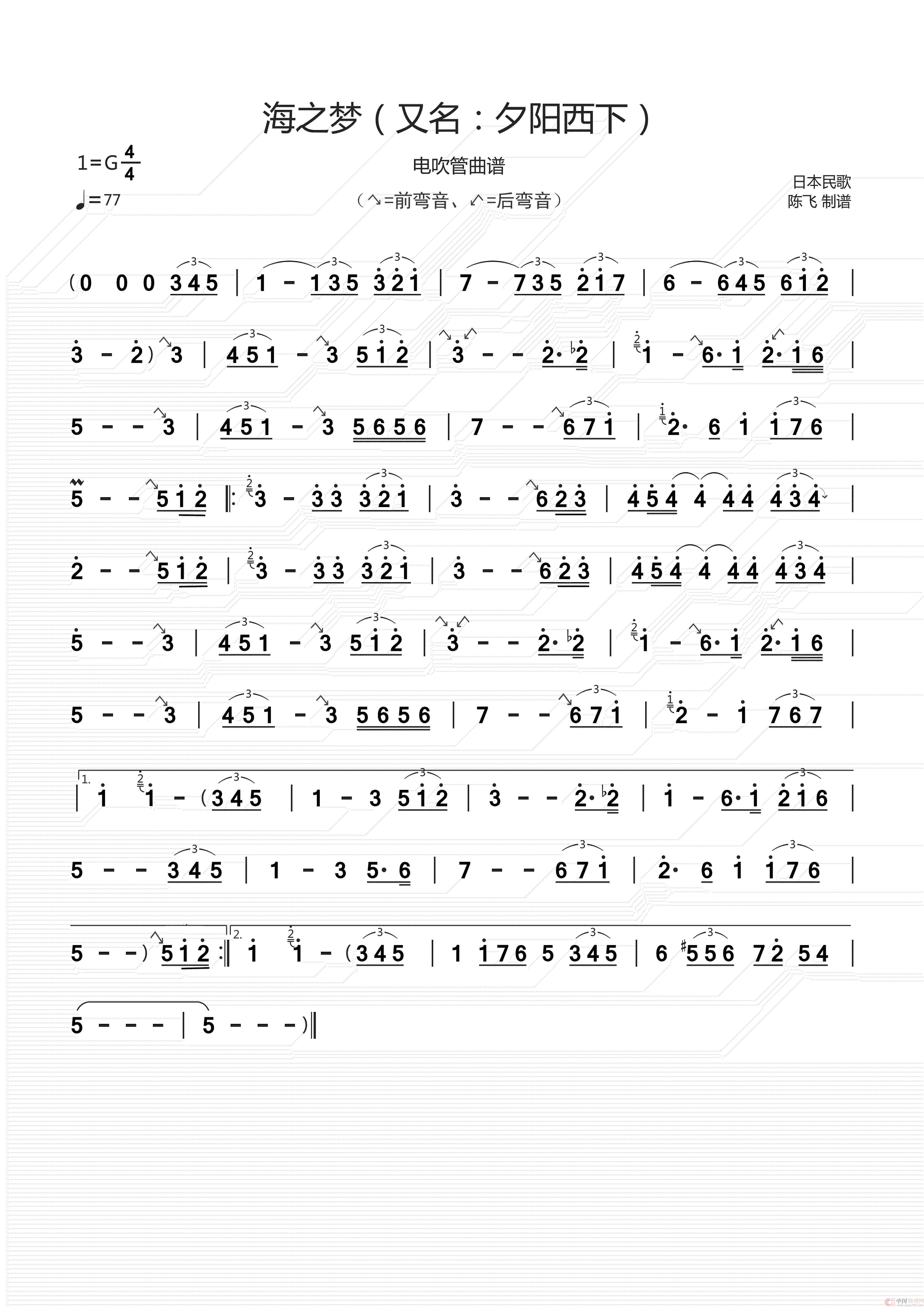 海之梦(又名:夕阳西下)(电吹管曲谱)
